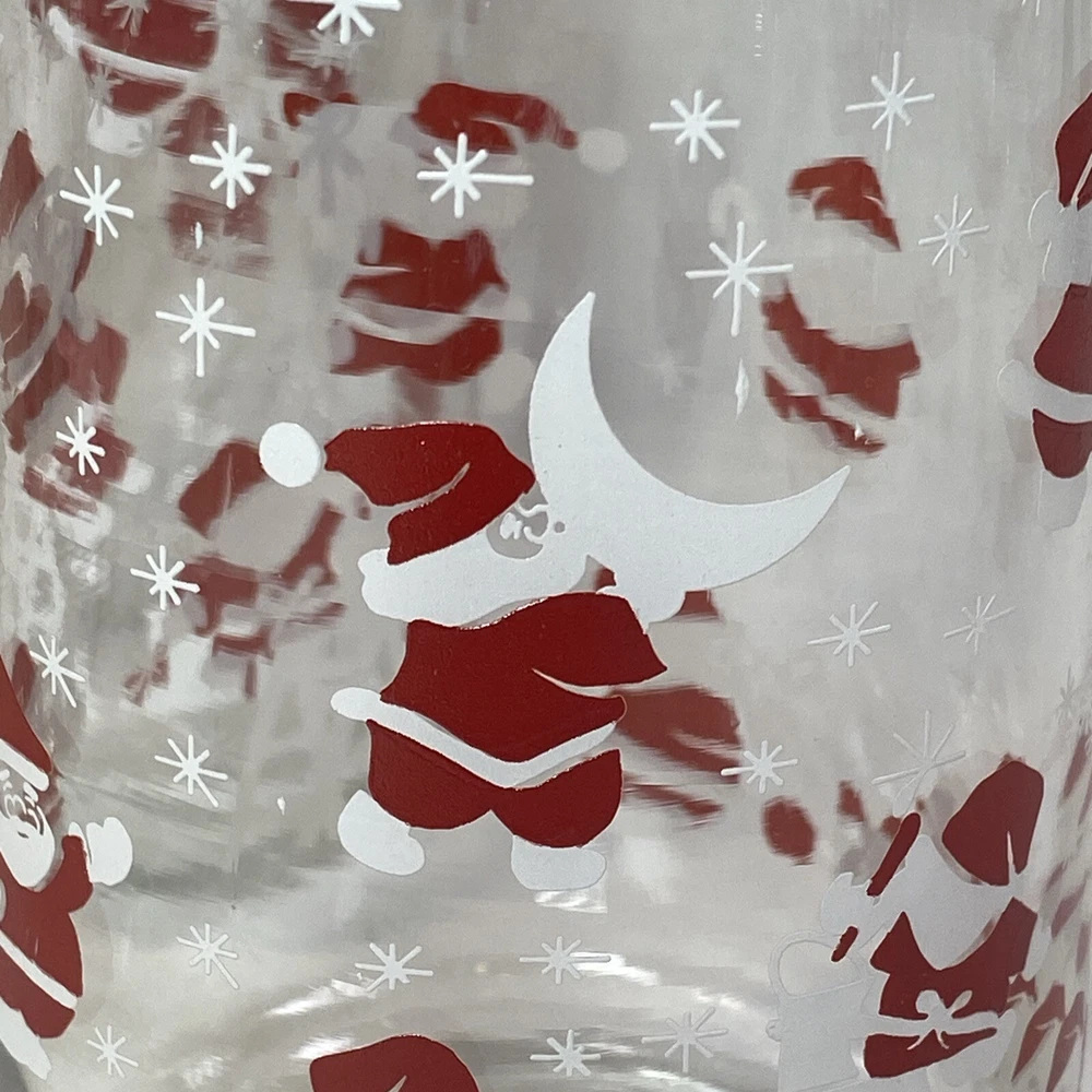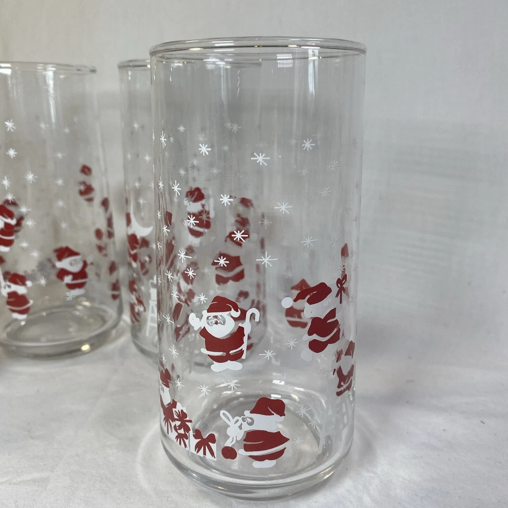 Vintage Christmas Santa & Reindeer Drinking Glasses 5.75” Tall Set of 4