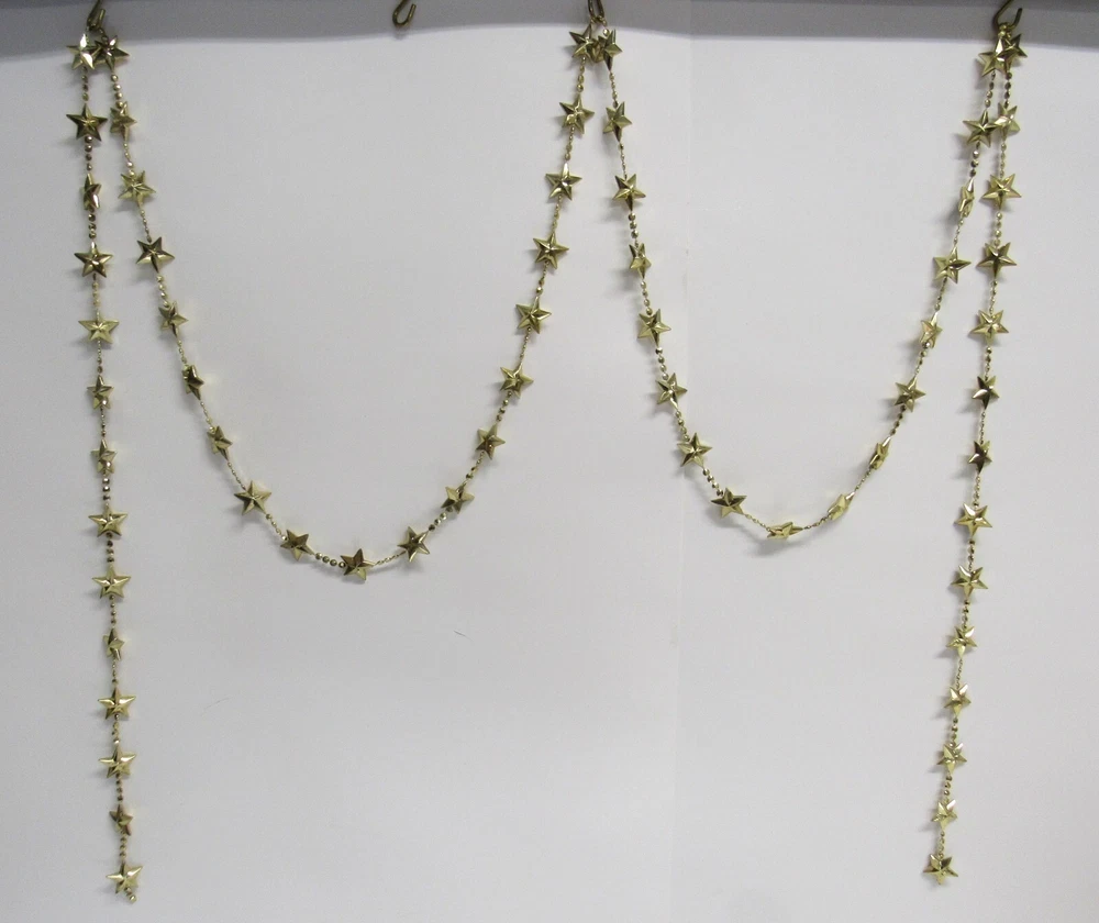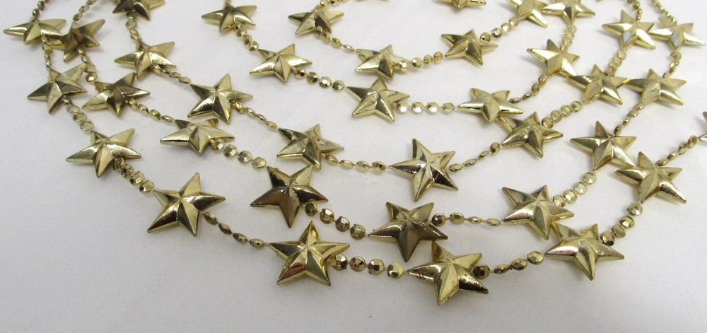 Vintage Christmas Tree Garland - Plastic Gold Stars, Faceted Beads - VGUC. Gold Garland of Stars and Beads in Very Good Used Condition. This is 9 feet 6 inches long, and each Star is 3/4 inches wide. A great addition to display on any Christmas tree or Mantle. Ships via USPS Ground Advantage for a flat amount. - Please review all pictures as these are part of the description of this item - Please pay for items within three days of purchase - Feedback is highly appreciated - Message me with any questions before purchase