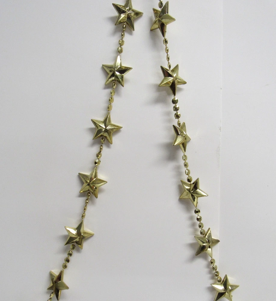 Vintage Christmas Tree Garland - Plastic Gold Stars, Faceted Beads - VGUC