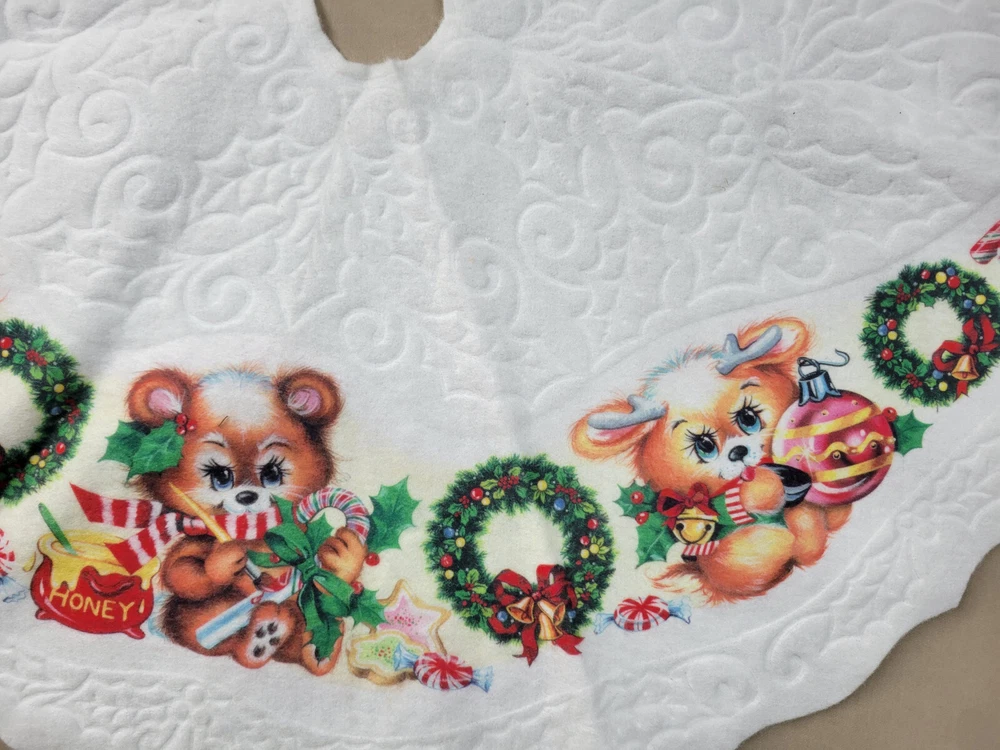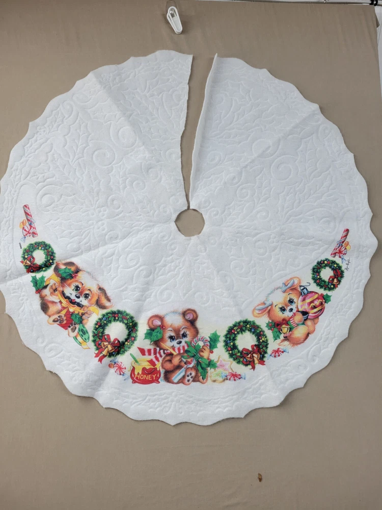 Vintage Rennoc Joyce Garofalo felt Christmas tree skirt. Baby animals with Christmas decor. Very good clean condition. It has been cut. Item will ship within one business day of completed sale. I DO NOT ship media mail. All items will be securely packaged and will ship USPS Ground Advantage, Priority mail, UPS or Fedex depending on weight and size. I do offer a 30-day money back guarantee on almost every item I sell. If there are issues with your item, please return it for a refund. Refund will be issued upon return of item. Some restrictions may apply. It is always appreciated if you contact me before starting a return so that I can try and assist without the hassle of a return.