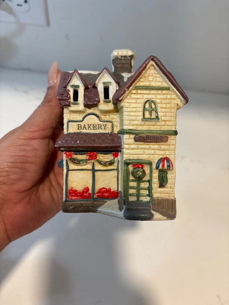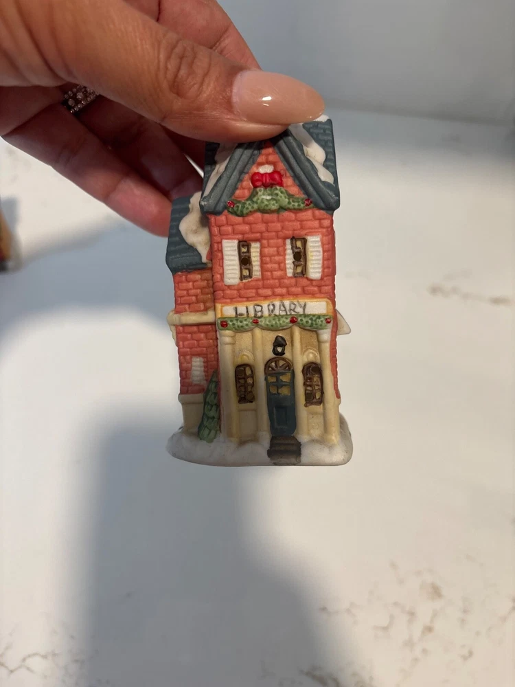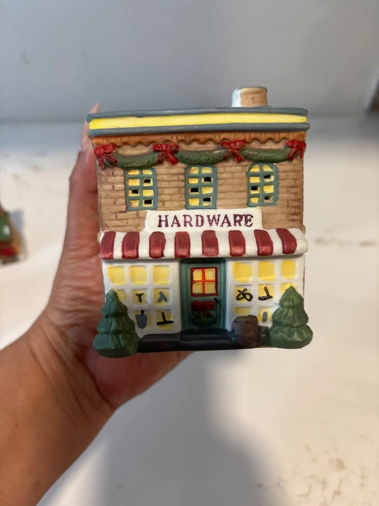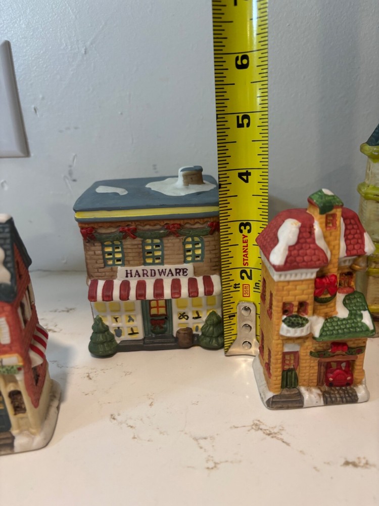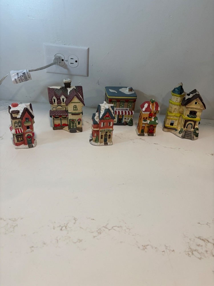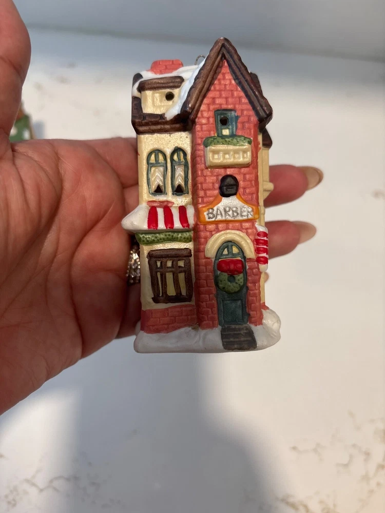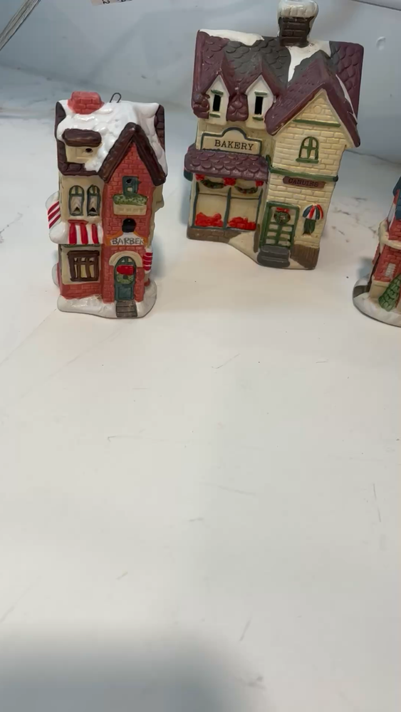 Vintage Christmas Village Set with Bakery Church Firehouse Barbershop +2 Preowned