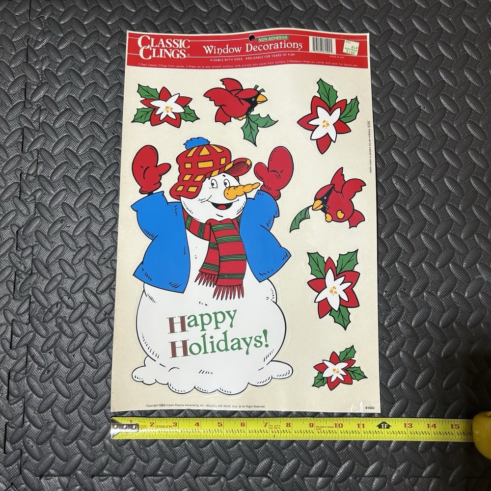 Featuring a snowman and cardinal design, these window decals add a touch of nostalgia to your home during the Christmas season. Suitable for adults, teens, and kids alike, these clings are a fun way to bring a retro 90s vibe to your space. Made in the United States, this set is perfect for celebrating the holidays in style. 100% Authentic. In-Hand Ready to Ship. Brand New. Please see pics above for a closer look at product & measurements. Approximately 18” Height & 12” Width. All measurements are a close approximate. Legit Seller.