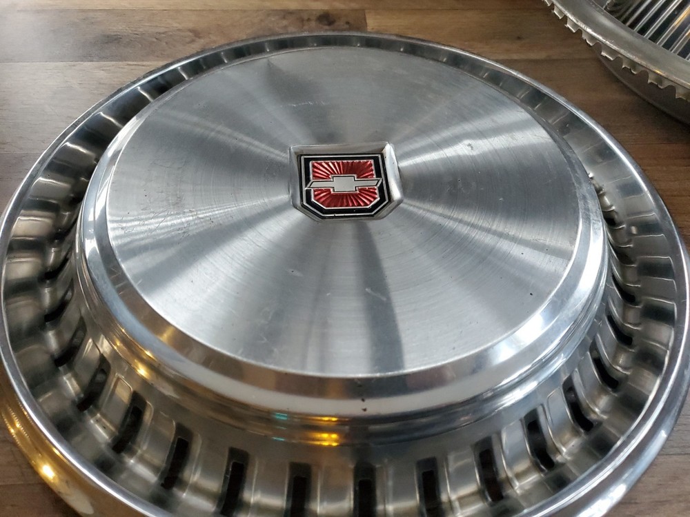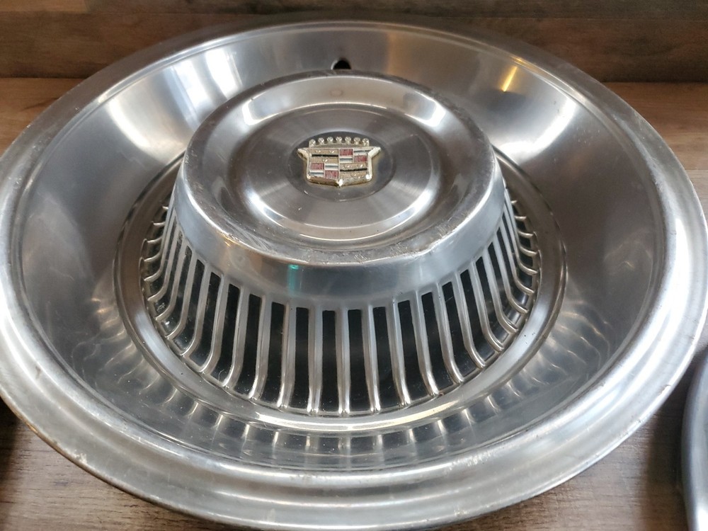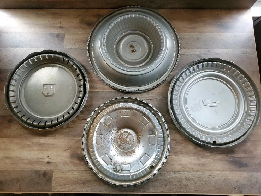 Vintage Hub Cap Wheel Cover Lot Of 4 Cadillac Chevy Etc. Good Condition. Includes all 4 Hub Caps shown. All are in good condition with a few dings and scrapes. Look good though. Nice collection items.
