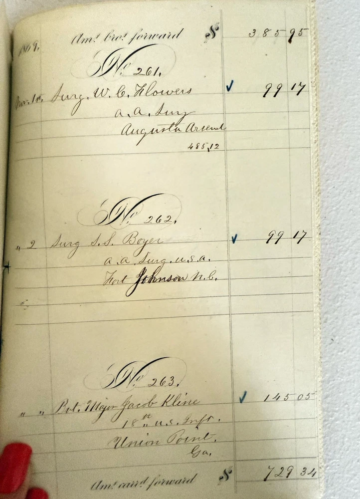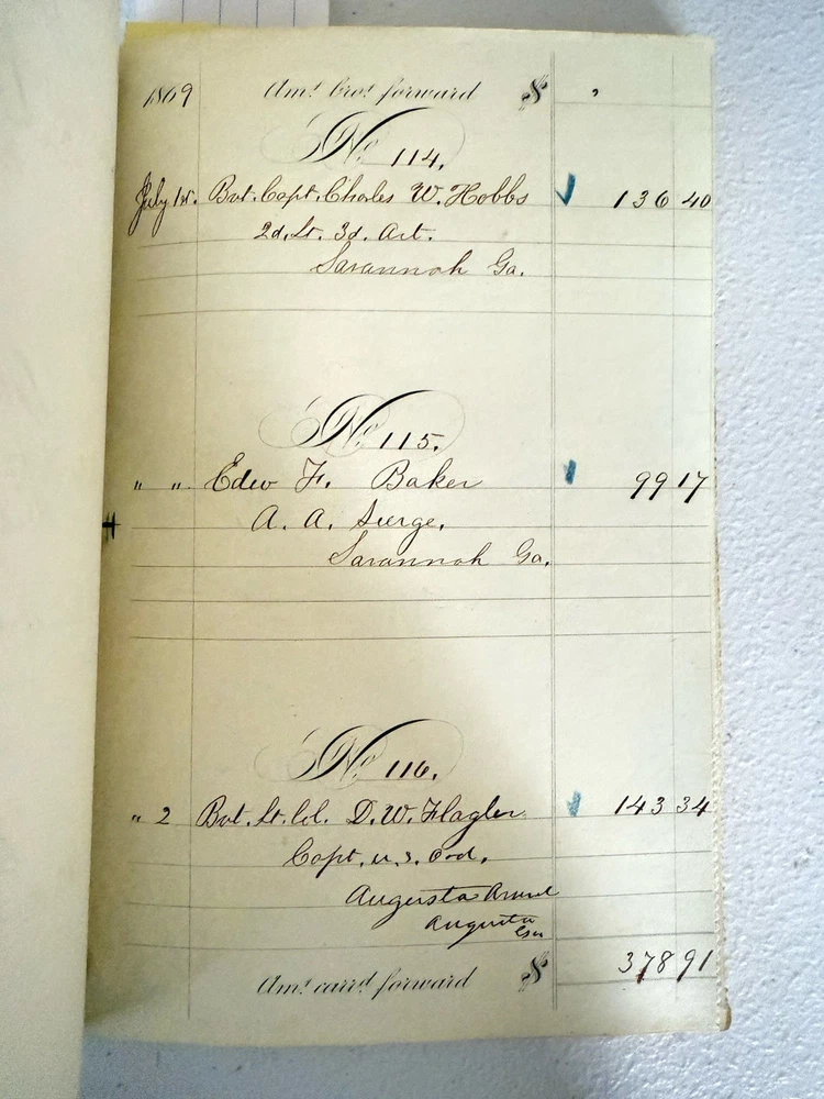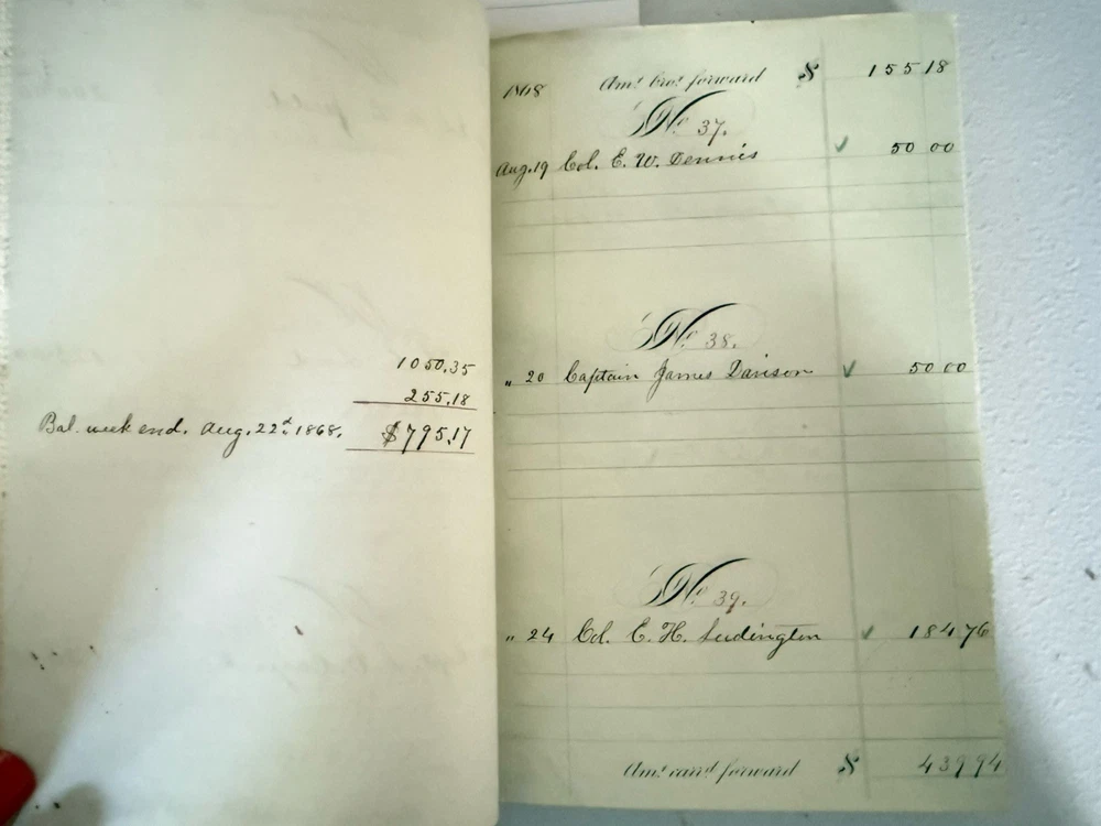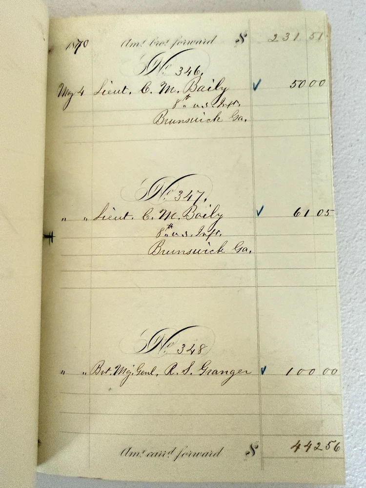 There Are 3 Bank Ledgers That Have The Names And Pay Amount To Several Soldiers From What I Can See. There Are 8th Infantry, 3rd U.S. Infantry Generals, Sergeant’s, Lieutenants, etc. The First One Is Dated From June 22, 1866 — September 6th, 1866. The Next One Is Dated March 5th, 1868 — To December 31, 1869. The Last One Is Dated January. 1, 1870 — March 7, 1871. The Ledgers Themselves Are In Decent Shape. The Pages Inside Are Good, Although There Are Some Pages With Some Staining. Possibly Some Names Of Some Important Soldiers In These Books. All Three Ledgers Have The Stamps On The Front Covers As Shown In Pictures. Two Of The Stamps Are National Bank Note Of New York. The Other One Says SAUR. Amer. Septent, Sigil Which Is The Seal Of The US Treasury Department! Please Look At All Pictures As A Big Part Of The Description. AS IS!