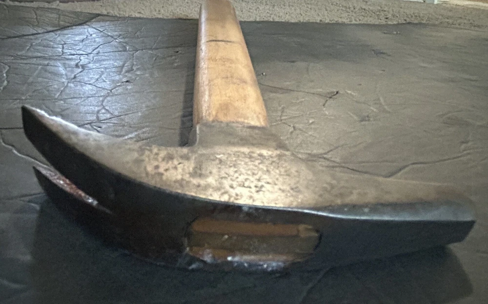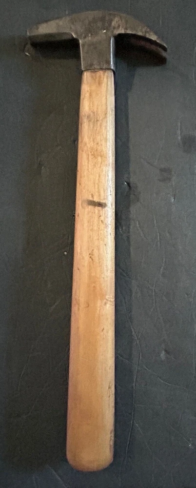 This vintage claw hammer with 13" wood handle is unbranded. The hammer head measures 5" across.