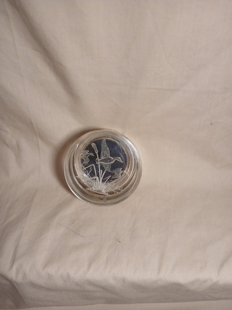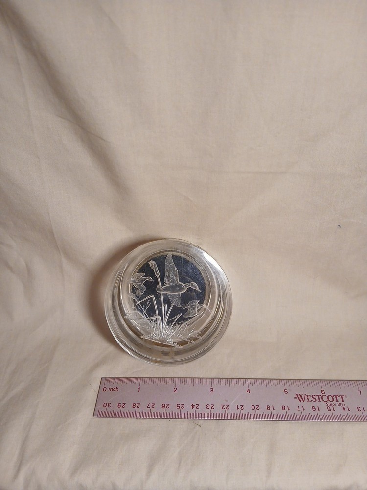 Vintage Clear Acrylic Lucite Lidded Trinket Box Etched Ducks