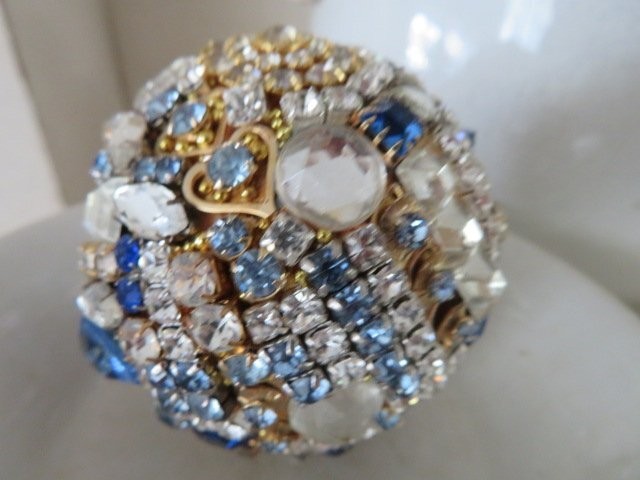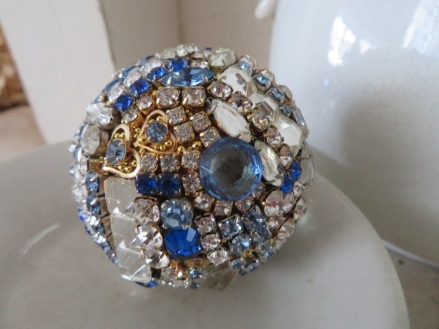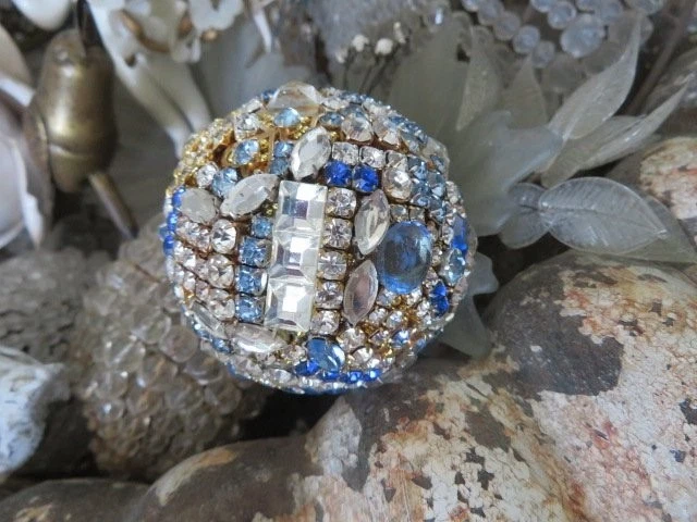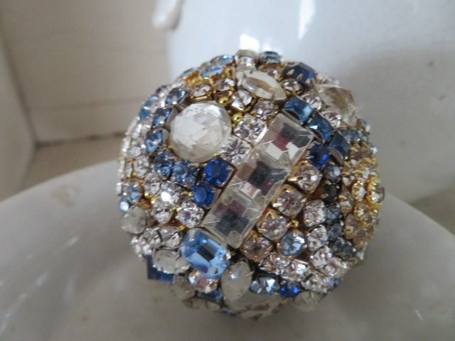 Vintage Clear Blue Rhinestone Jewelry Ball Elegant Decor
