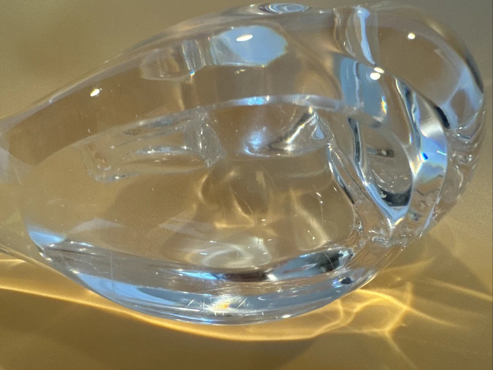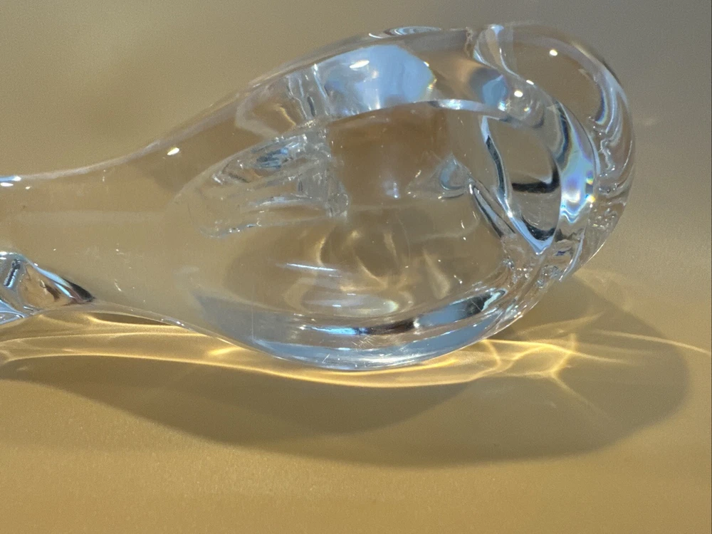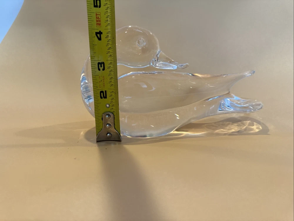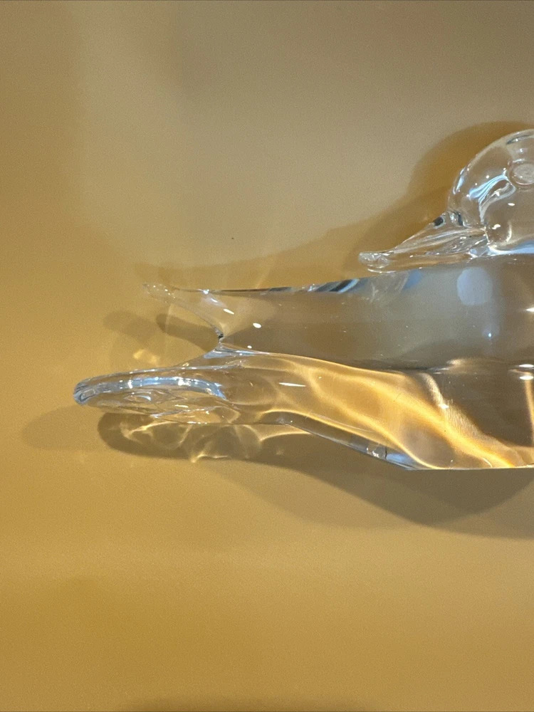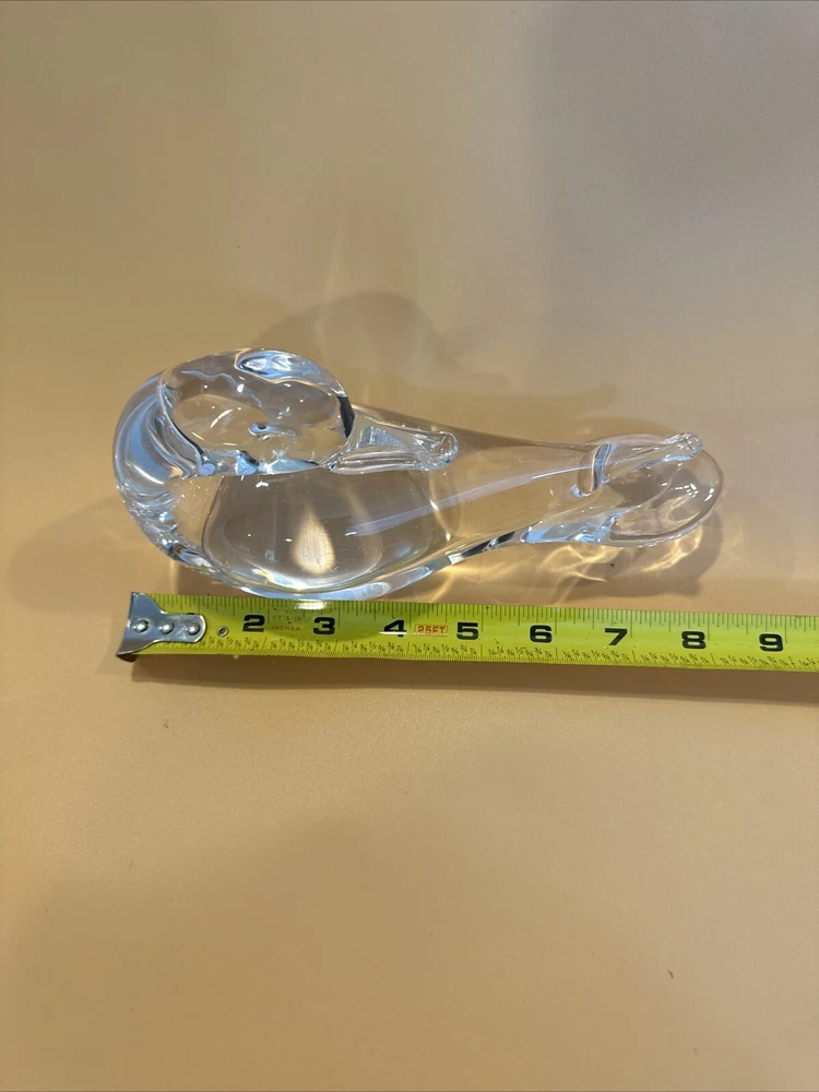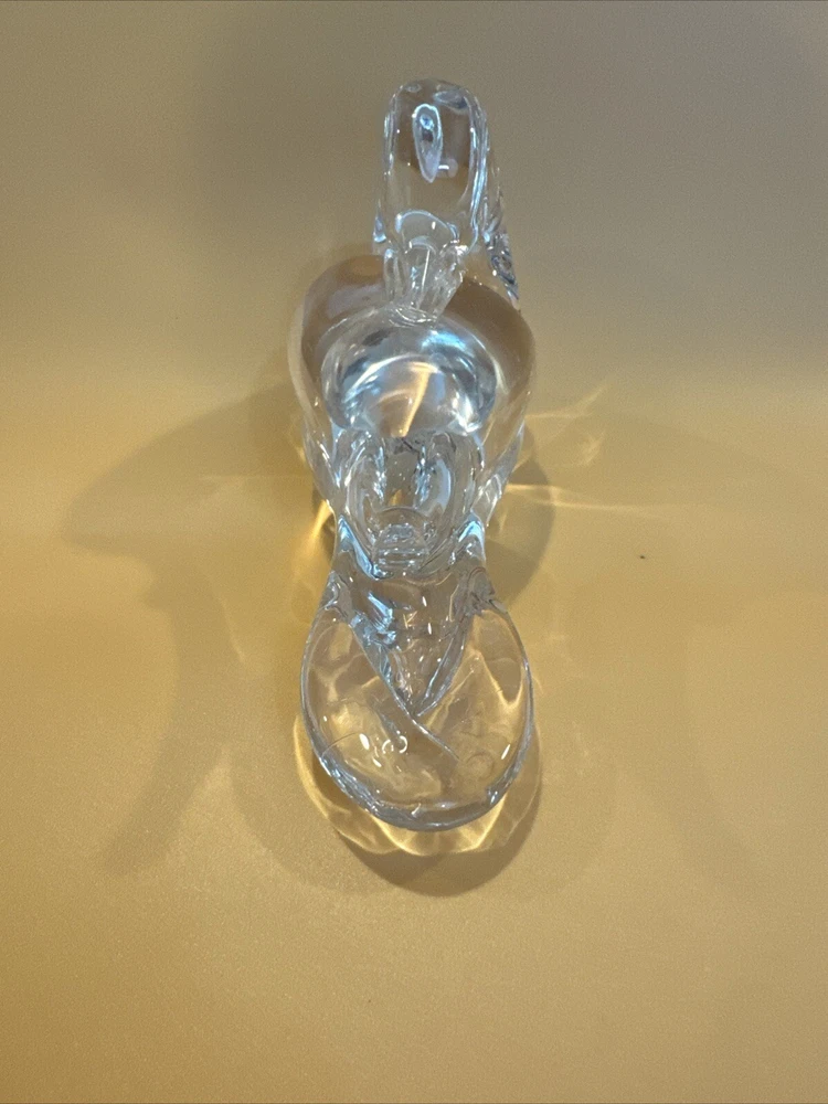 This vintage figurine is a stunning addition to any collection. Crafted from clear glass, it features intricate crystal details that sparkle in the light. The swan subject is beautifully captured, making it a perfect decoration for bird lovers. The figurine is unmarked, adding to its mystery and allure. It would make a great gift for a collector or as a special treat for yourself. Pre-owned condition. No original box. No damages. Has some scratches. Please check the pictures carefully as part of the description. Feel free to ask questions if you need more information before you buy it. Thank you for your interest Oct