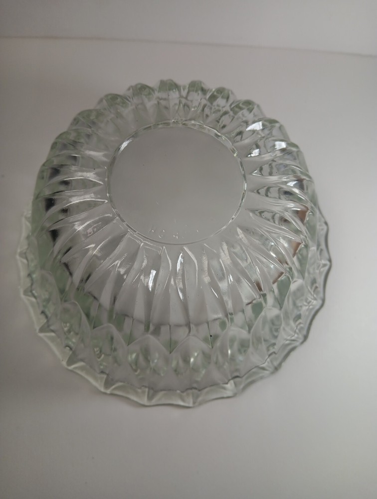 This is a vintage clear glass bowl that can also be used as a candy dish. It features a sunburst design and is unbranded. Made of glass, this bowl is a decorative piece that adds a touch of elegance to any setting. NO chips/cracks. This item is a part of an Estate Sale. All items are sold AS-IS. All sales are final. G.....