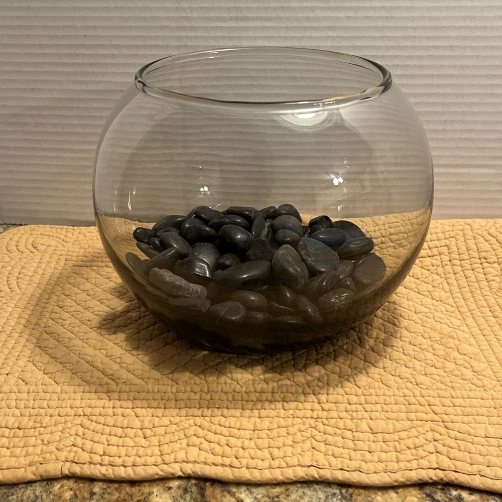 Comes as Pictured- Black Rocks NOT included Excellent condition-measurements in pictures “24.5 inch circumference Thick Clear Glass Any Questions Message Me