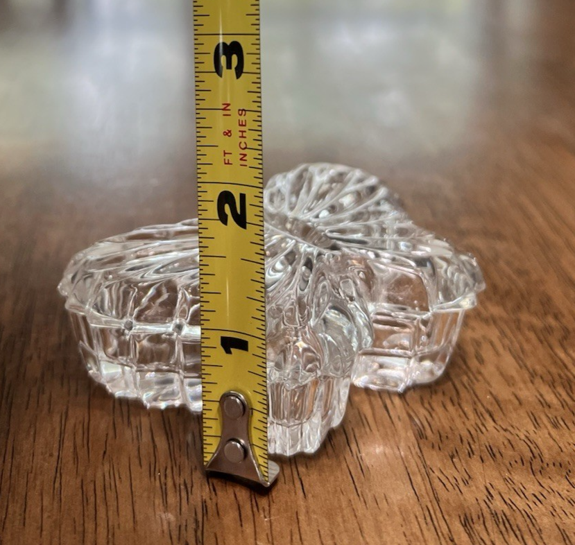 Shape: Butterfly Subject: Butterfly Collection: Keepsake Boxes Brand: Unbranded Size: Small Type: Trinket Box Time Period Manufactured: 1980-1989 Features: Cover Customized: No Occasion: All Occasions Color: Clear Country/Region of Manufacture: Unknown Room: Any Room Style: 1980s Material: Glass Engraved: No Theme: Animals & Dinosaurs Seller Notes: “good pre-owned condition - no flaws noticed” Era: Late 20th Century (1970-1999)