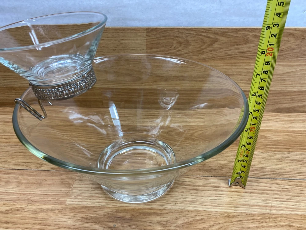 Vintege Clear Glass Serving Bowl 11" Wide, With Small Dipping Sauce Bowl.They look like nevere been used,no scratches,chips,or cracks,no original box WE OFFER COMBINED SHIPPING AND MULTI-ITEM PURCHASE DISCOUNTS.IF YOU HAVE ANY QUESTIONS, PLEASE LET US KNOW