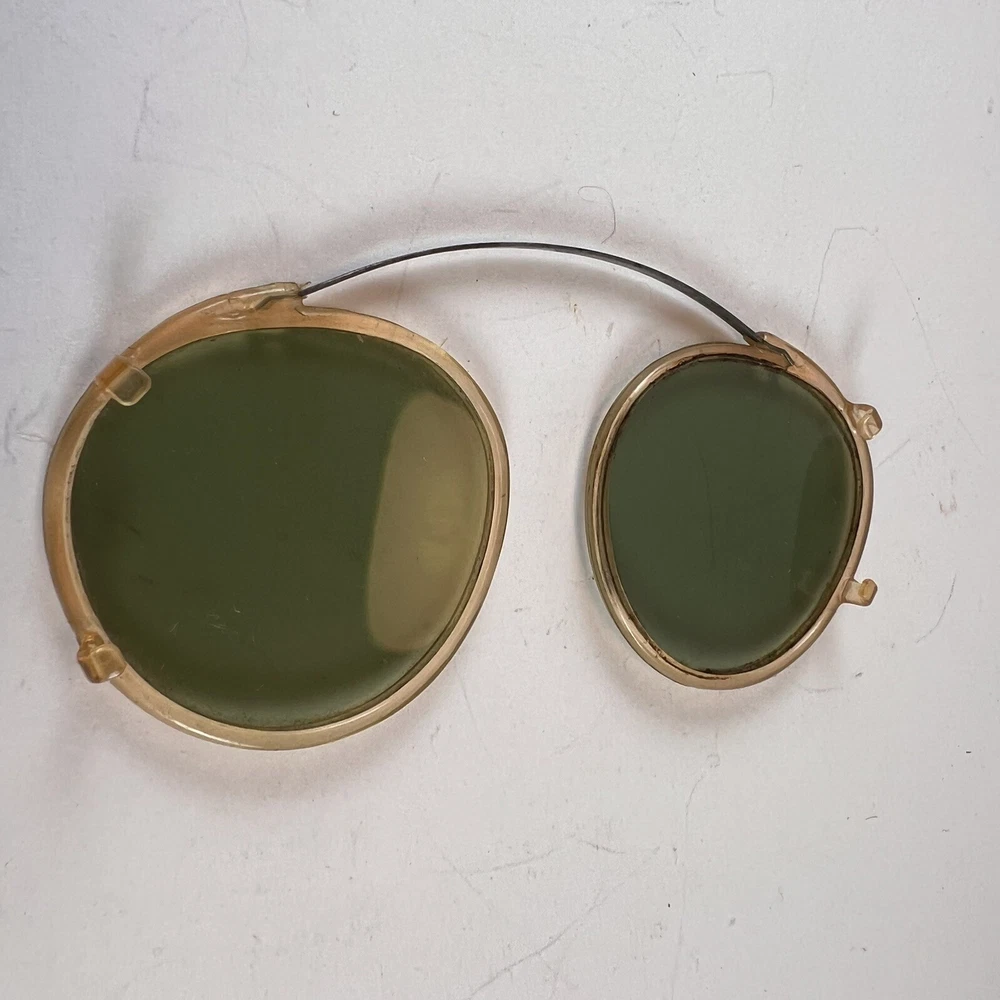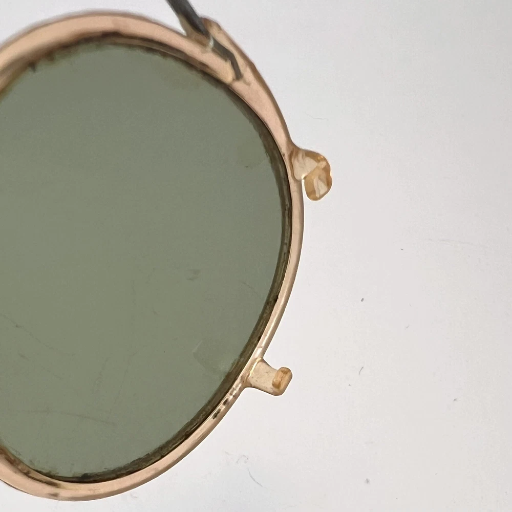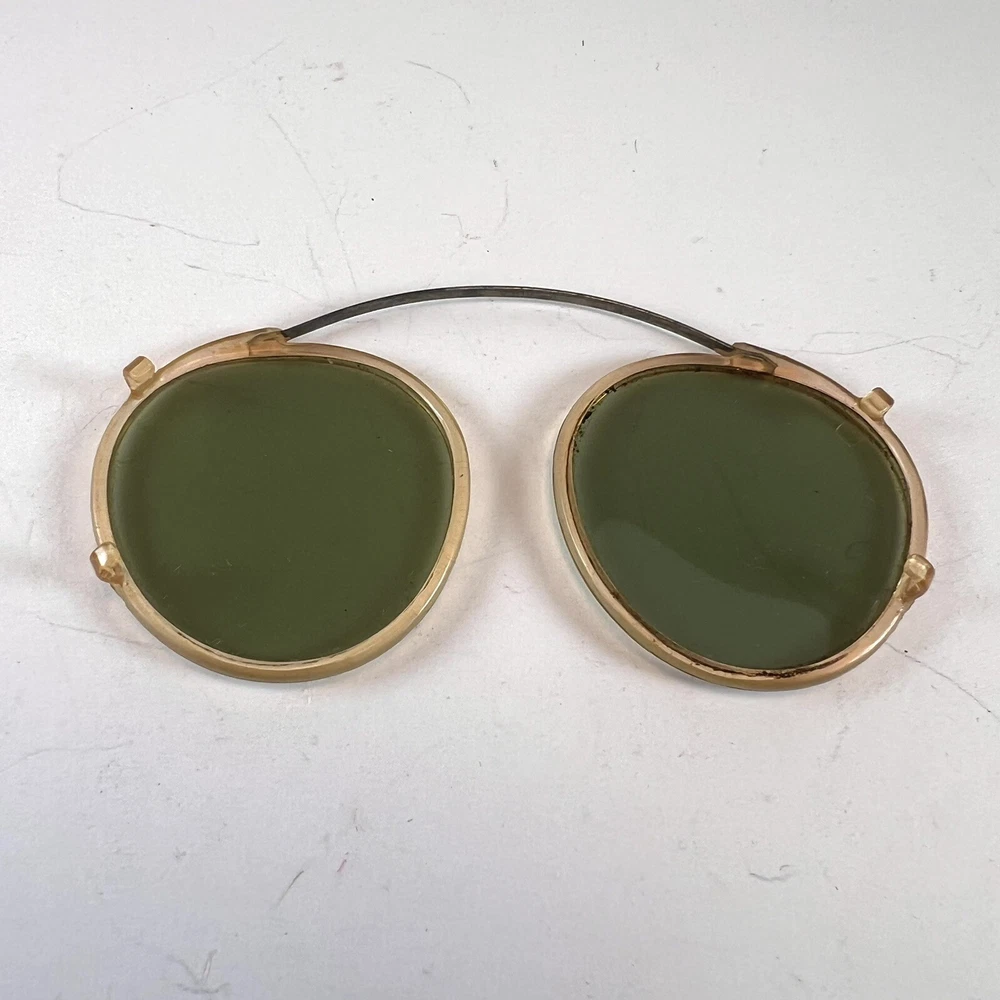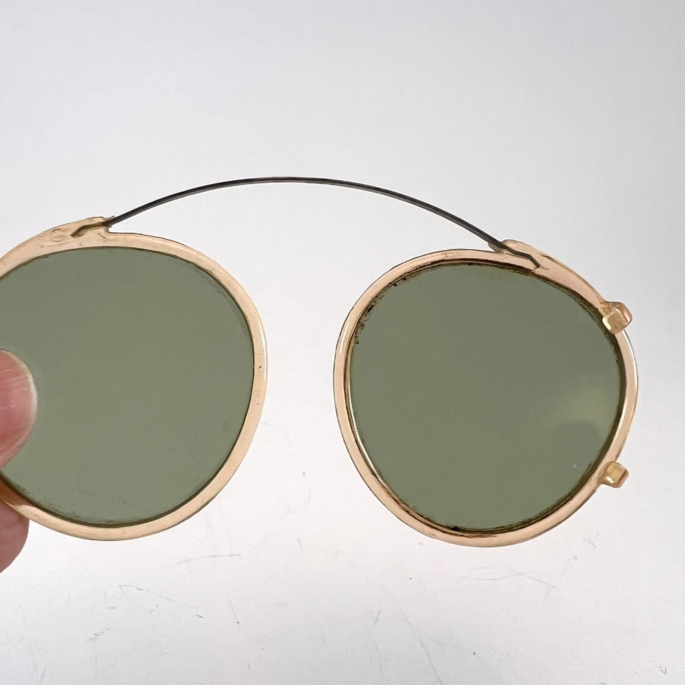 Antique Clip On Sunglasses Polarized Eyeglasses Wire Rim Gold Color Green Lenses