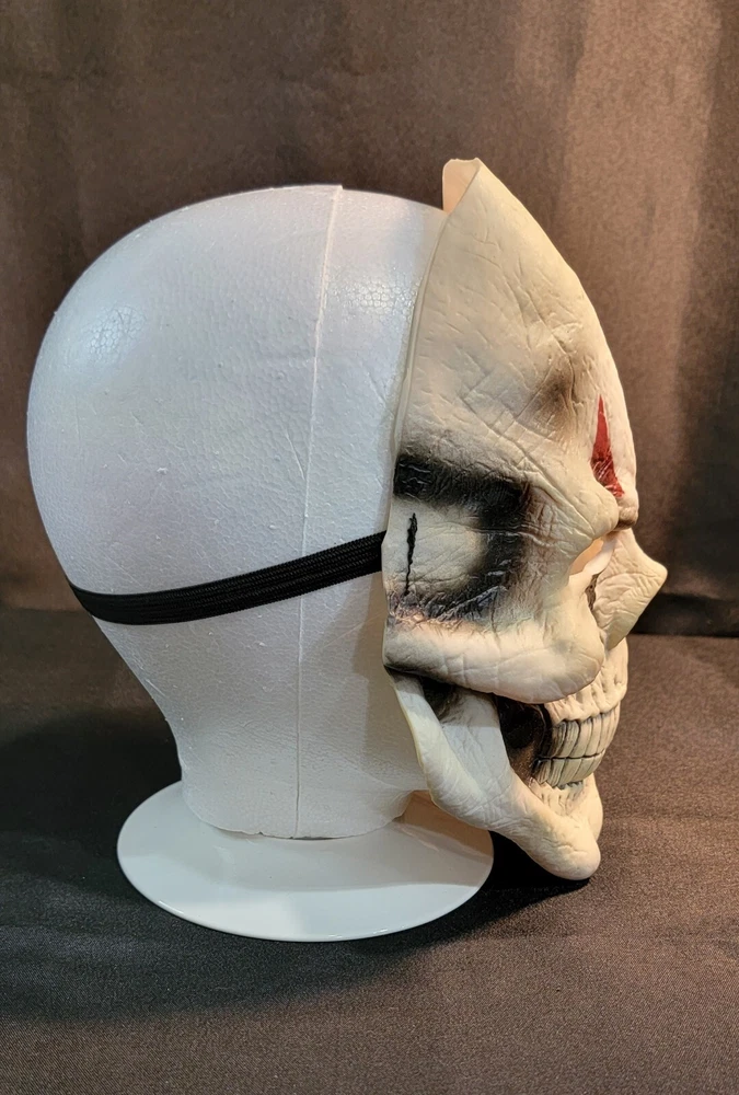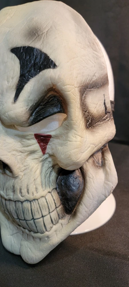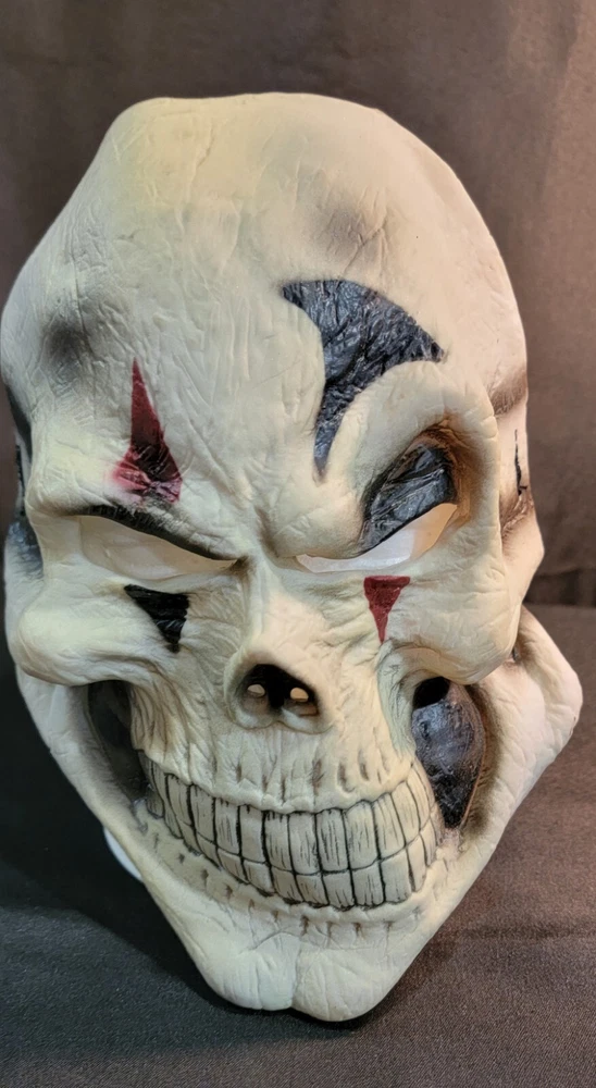 Get ready for a spooky Halloween with this vintage clown skull joker skeleton face mask. Made of high-quality latex material, this mask ensures a comfortable and secure fit for adult unisex wearers. The multi-color design and skull skeleton theme make it perfect for any creepy Halloween scare occasion. This one-size mask is manufactured in China and features an elastic band for easy wearing and removal. Its style is perfect for those who love face masks, and it is suitable for any Halloween costume. Make a statement with this unique and scary mask, perfect for any haunted house or Halloween party. See pictures for details