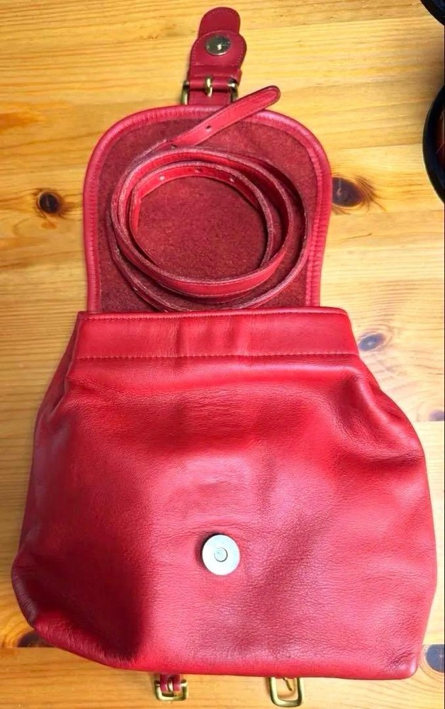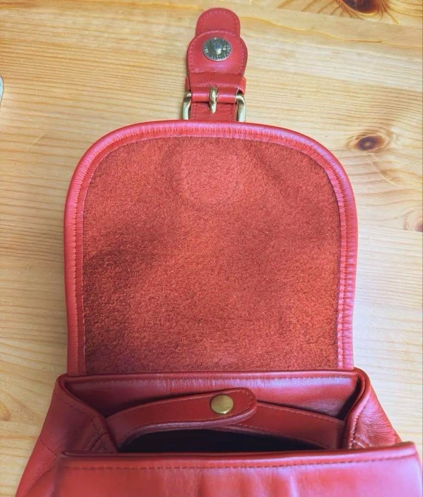 Absolutely love this rare vintage find! The leather is buttery soft and the 90s red color is even more vibrant in person. Arrived quickly with secure packaging - totally worth it for such a unique piece!