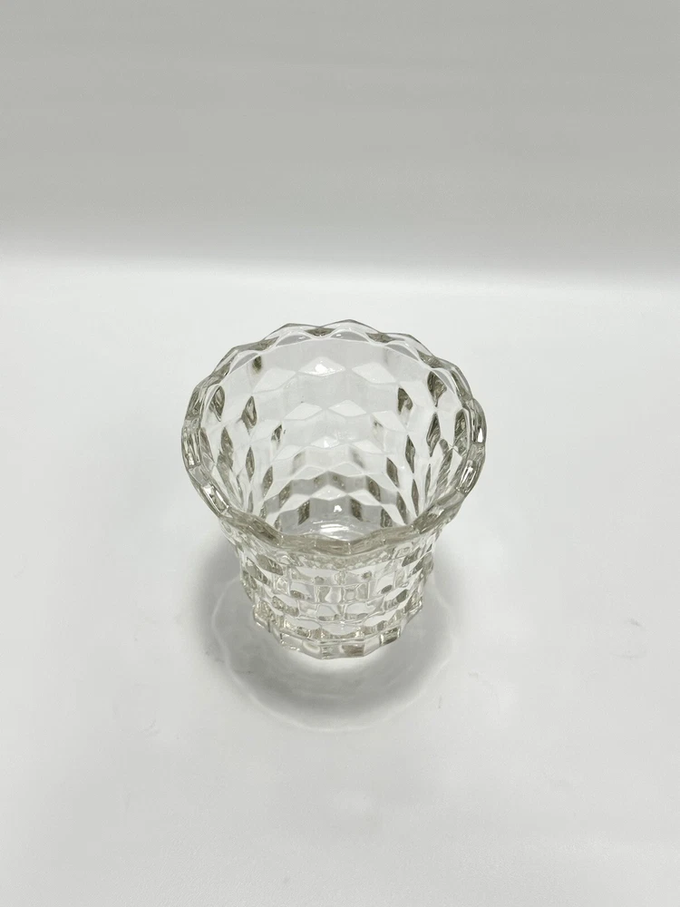Original/Reproduction: Original Size: Small Color: Clear Brand: COLONY Year Manufactured: 1964 Item Width: 3 in Era: Mid 20th Century (1941-1969) Item Height: 3.5 in Material: Glass Finish: Glossy Room: Any Room Occasion: All Occasions Style: Colonial Shape: Asymmetrical Pattern: Whitehall Time Period Manufactured: 1960-1969 Type: Candle Holder Country/Region of Manufacture: United States Antique: No Handmade: No Number in Pack: 1 Suitable For: Mini Candle, Votive