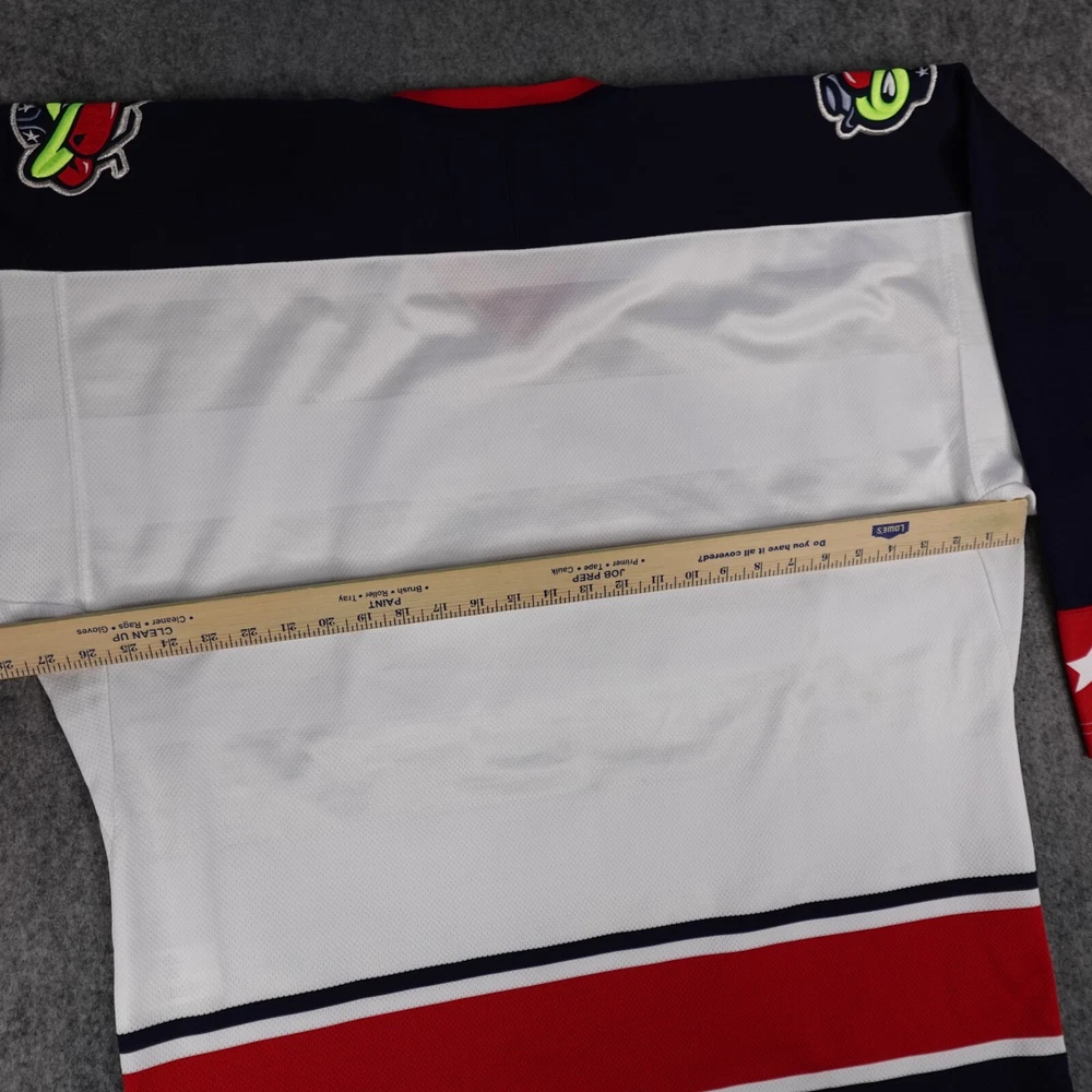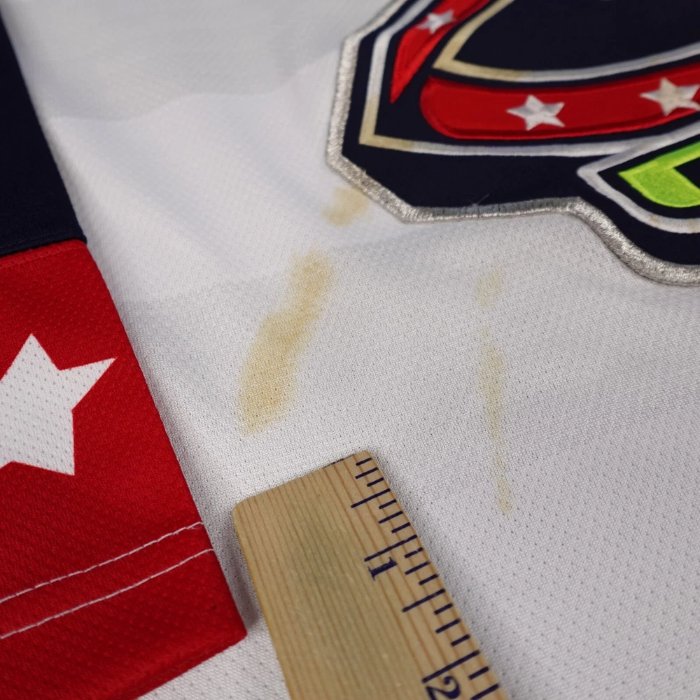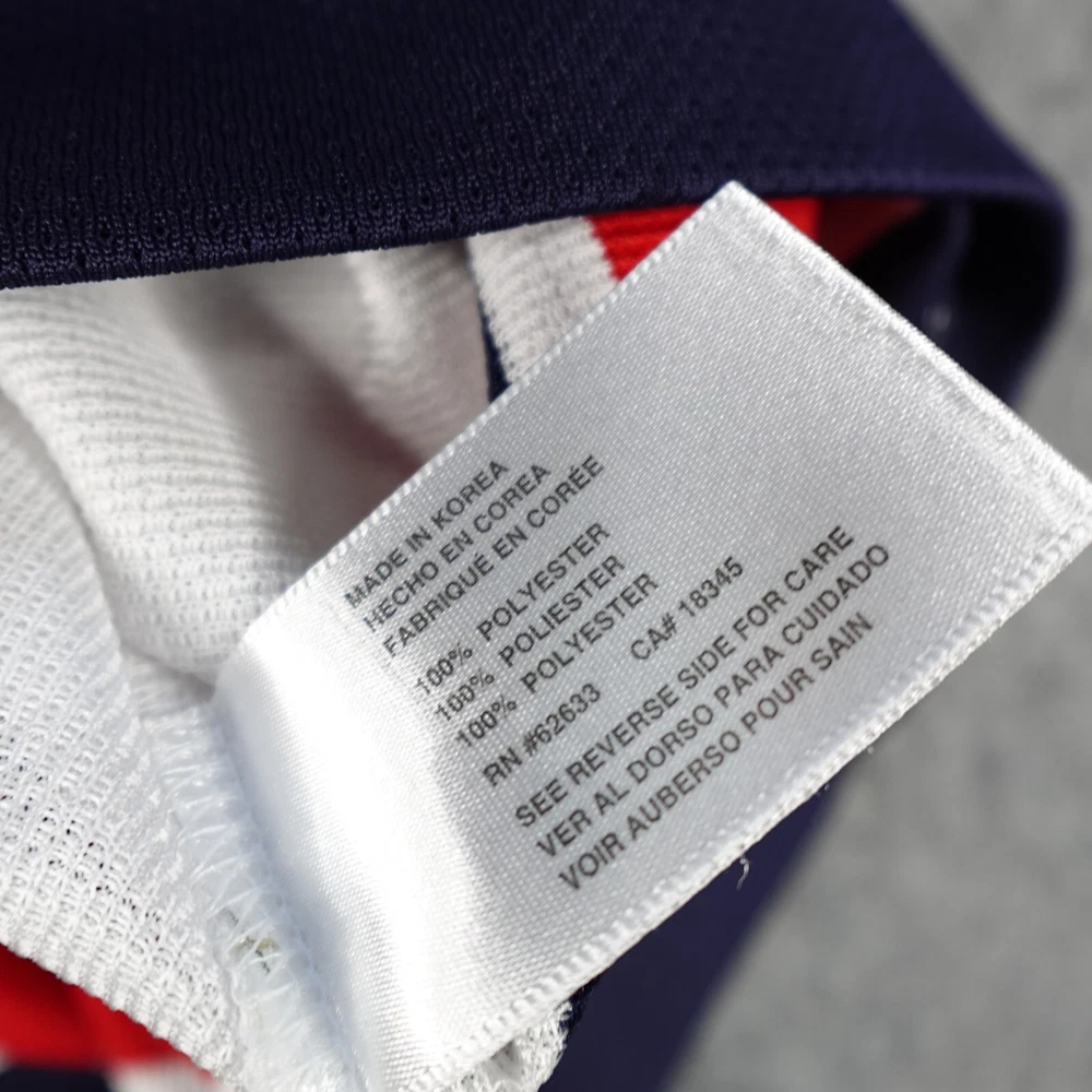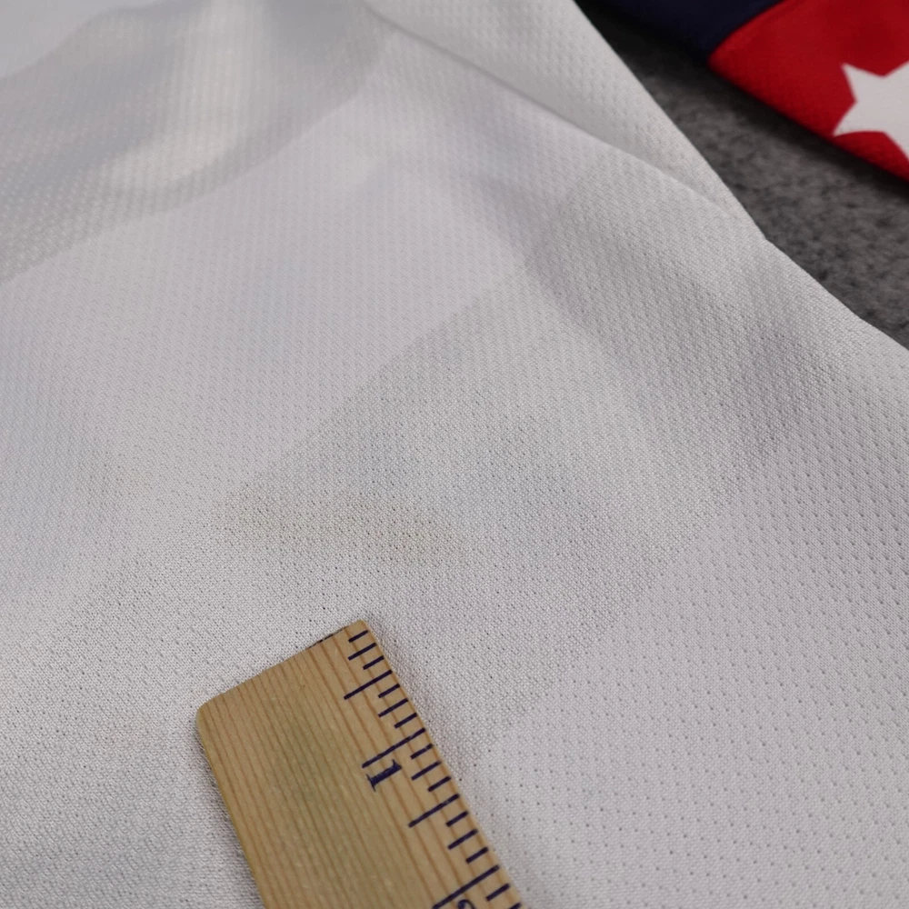 In good used condition. No holes or tears, but stain noticed on front and across part of embroidered logo (has undergone normal wash/dry and an initial spot treatment). Other light wear present from past use. See pictures to assess. Measurements are pictured.