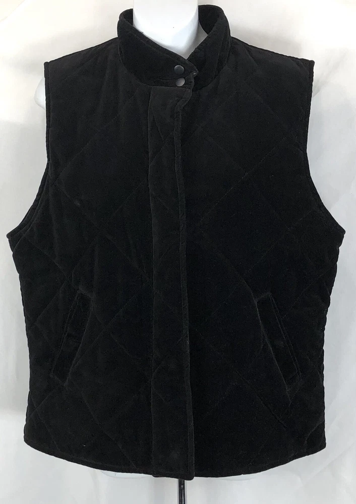 Vintage Comfort Zone Velvet Vest M Black Zipper Snap Front Pockets Mock Collar Chest 44" (22" underarm seam to underarm seam) Length 24" ***Tag size is M but measures a little larger* ** Excellent Fashion Gem Fast shipping , same or next business day with tracking number for confirmation Thank you Questions? Please let me know I answer questions promptly Have a great day! WalkupandDeal offers great deals on previously loved items....... We inspect each garment for any flaws the item may have: missing buttons,holes,spots,tears or pilling. Our suppliers are carefully selected, so we only offer items that are in Great with minimal wear ,excellent,nearly new or New with tags condition.Information on each item can be found in the "item specifics" tab, including: Size, measurements,fabric content and care instructions. Our faculty is a non smoking environment and each item is laundered & steamed prior to listing and shipping.We strive for every customer to be happy with their items and as always offer a "return for any reason" policy...........Thank you for shopping with us!!!