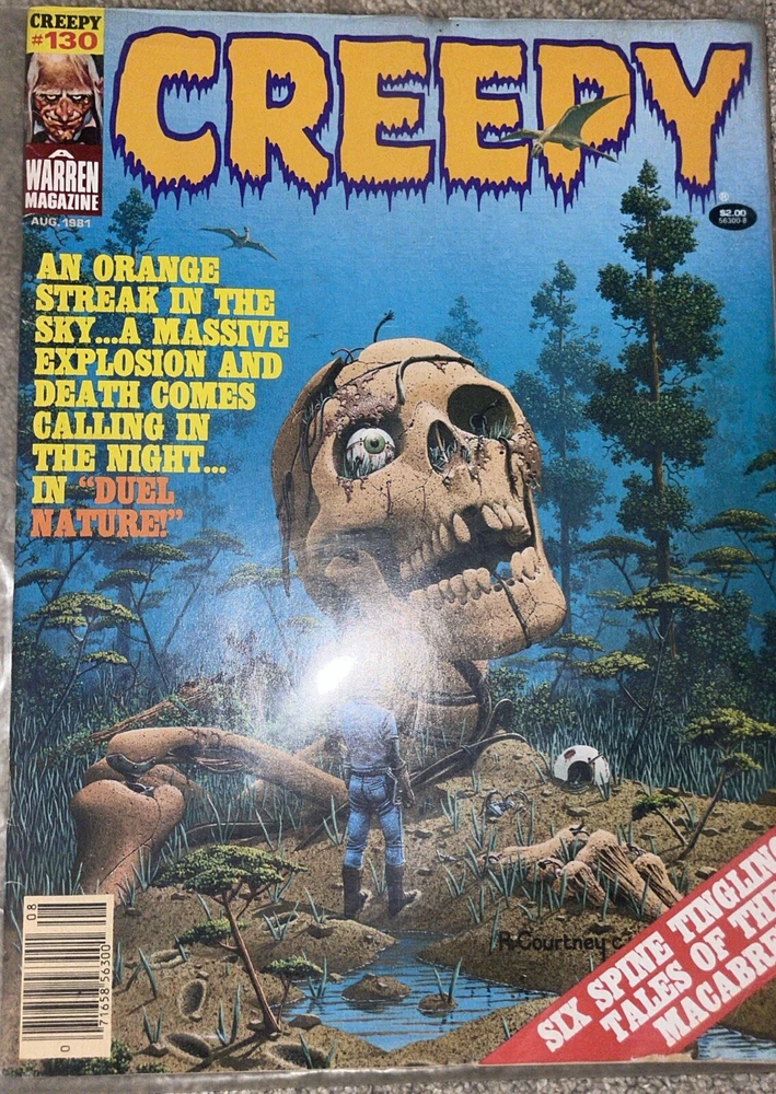 This lot includes three vintage comic magazines: Creepy #112, 130, and 135. Immerse yourself in the world of horror comics with these issues, featuring a range of genres from the 1980s. Discover the eerie world of Creepy and experience the thrill of the unknown. Perfect for collectors and fans of the genre, this lot is a must-have addition to any collection.
