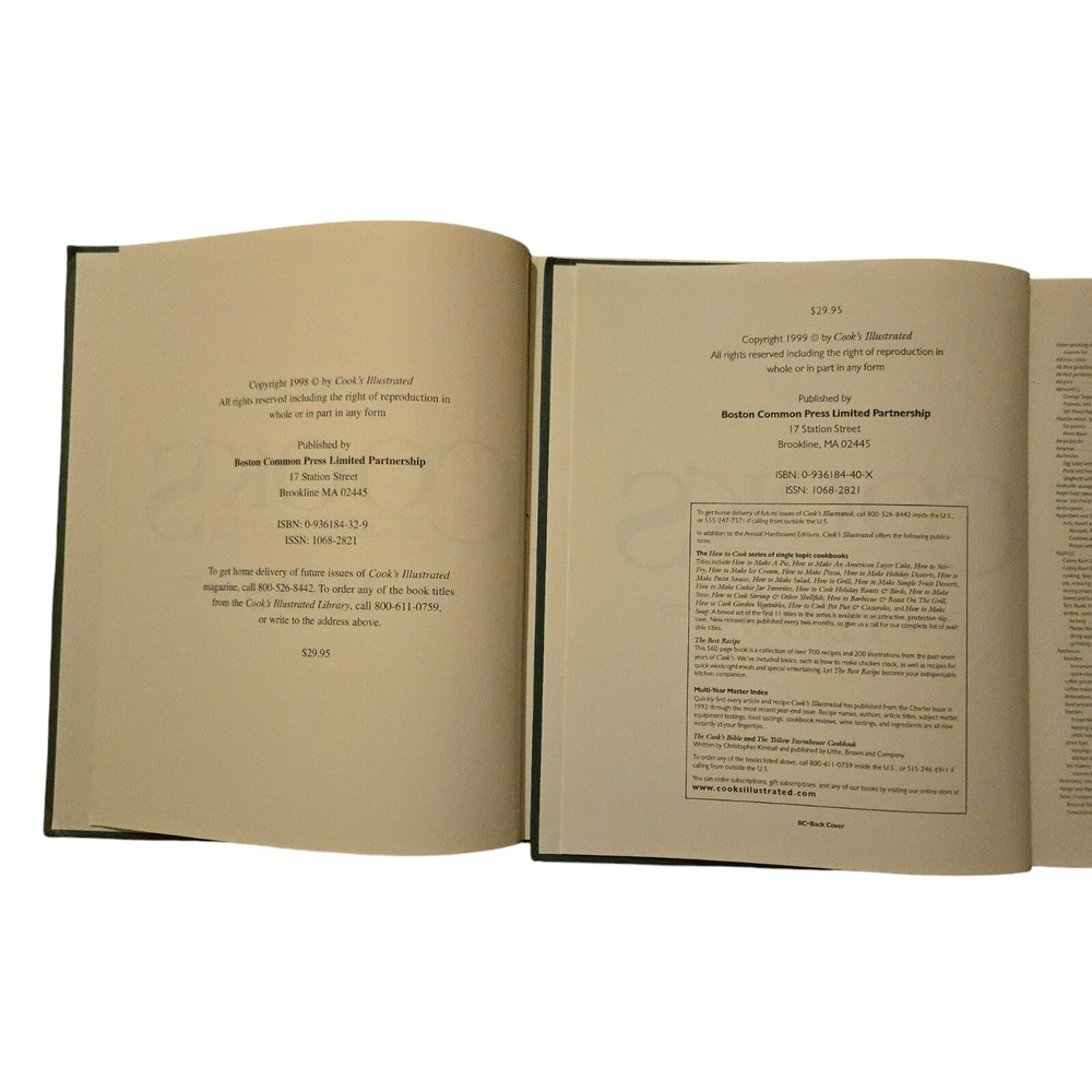 This product is a lot of two vintage Cook's Illustrated recipe books from 1998 and 1999. The books contain illustrated recipes and cooking tips.