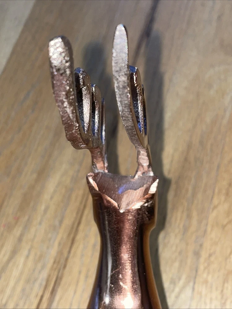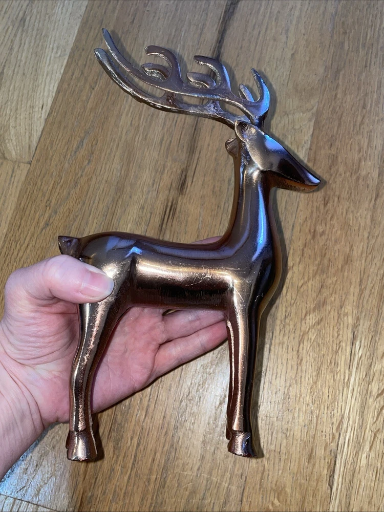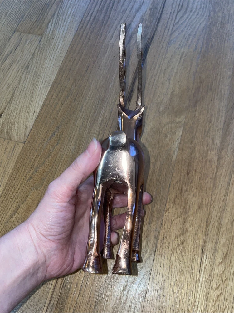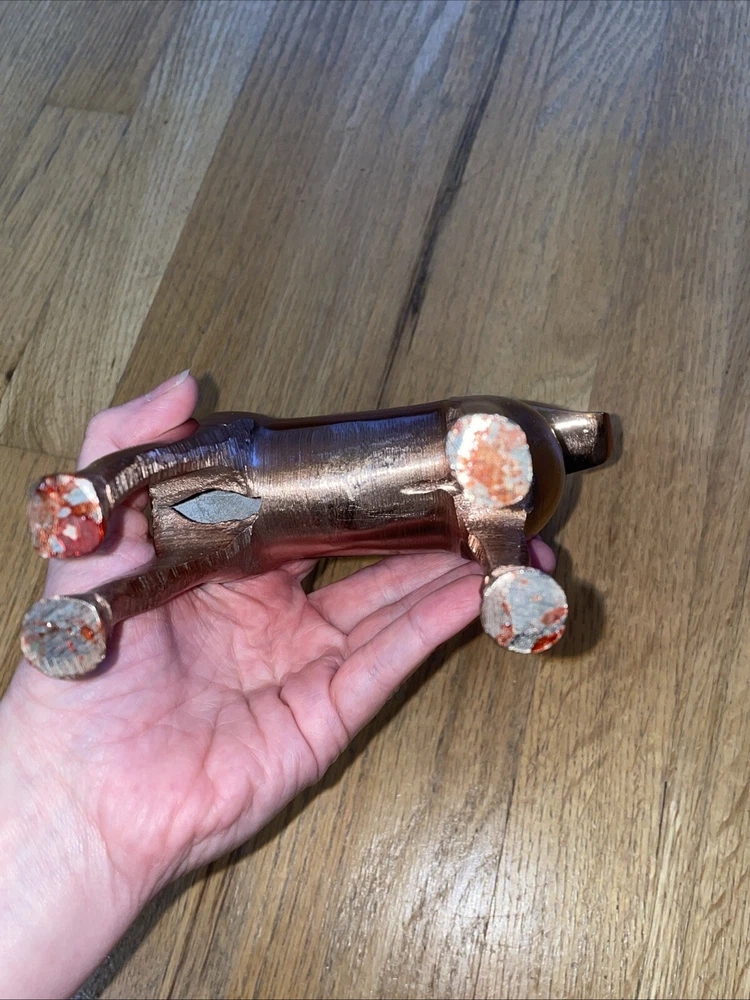 Good used condition, no breaks or cracks, has wear like scuffs Magnet does not stick so I assuming it’s real copper but it’s up to you 9 3/8” tall and about 6” long