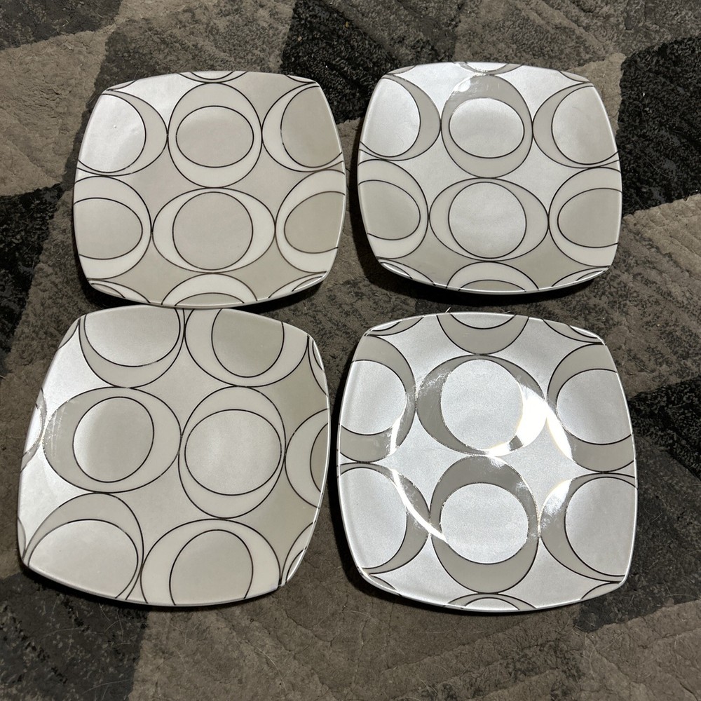 "ODEON" Fine China Salad Plates by HOME Set of 4. 8” Plates