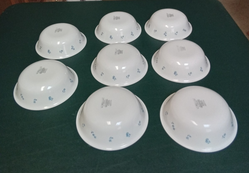 Item Width: 6-1/4 inches Number of Items in Set: Eight-Piece Brand: Corelle Shape: Round Original/Reproduction: Original Color: Multicolor Antique: No Material: Glass Finish: Glossy Country/Region of Manufacture: United States Culture: American Care Instructions: Hand Wash Only Style: Floral Franchise: Corning Type: Cereal Bowl Number of Place Settings: 8 Occasion: All Occasions Pattern: Provincial Blue Seller Notes: “In used condition with no chips or cracks. Some sign of wear from previous use.” Set Includes: Cereal Bowl, Soup Bowl Bowl Diameter: 6-1/4 inches Theme: Floral