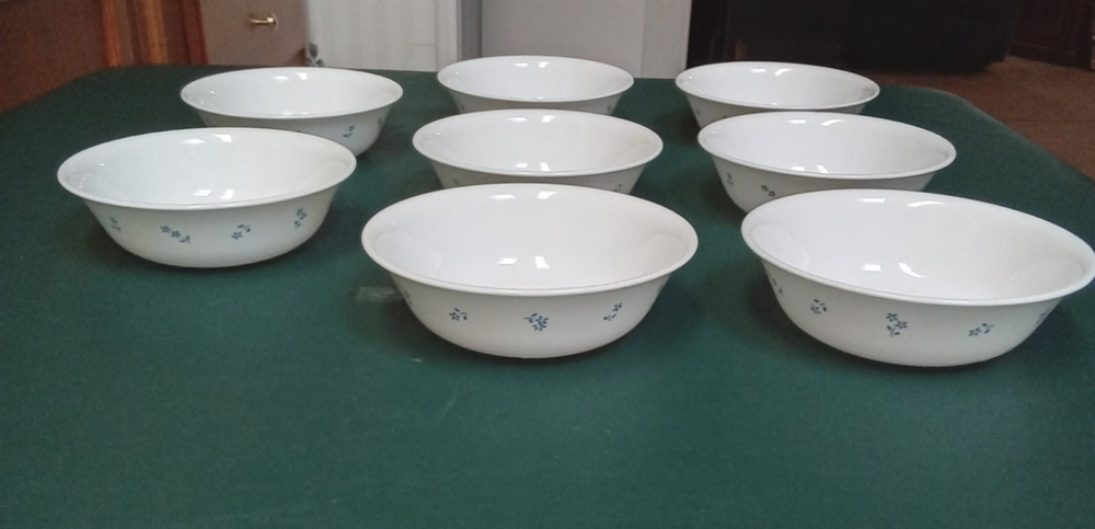 VTG Corelle Provincial Blue 6-1/4" Soup Cereal Bowls - Set of 8. In used condition with no chips or cracks. Some sign of wear from previous use. See photos.