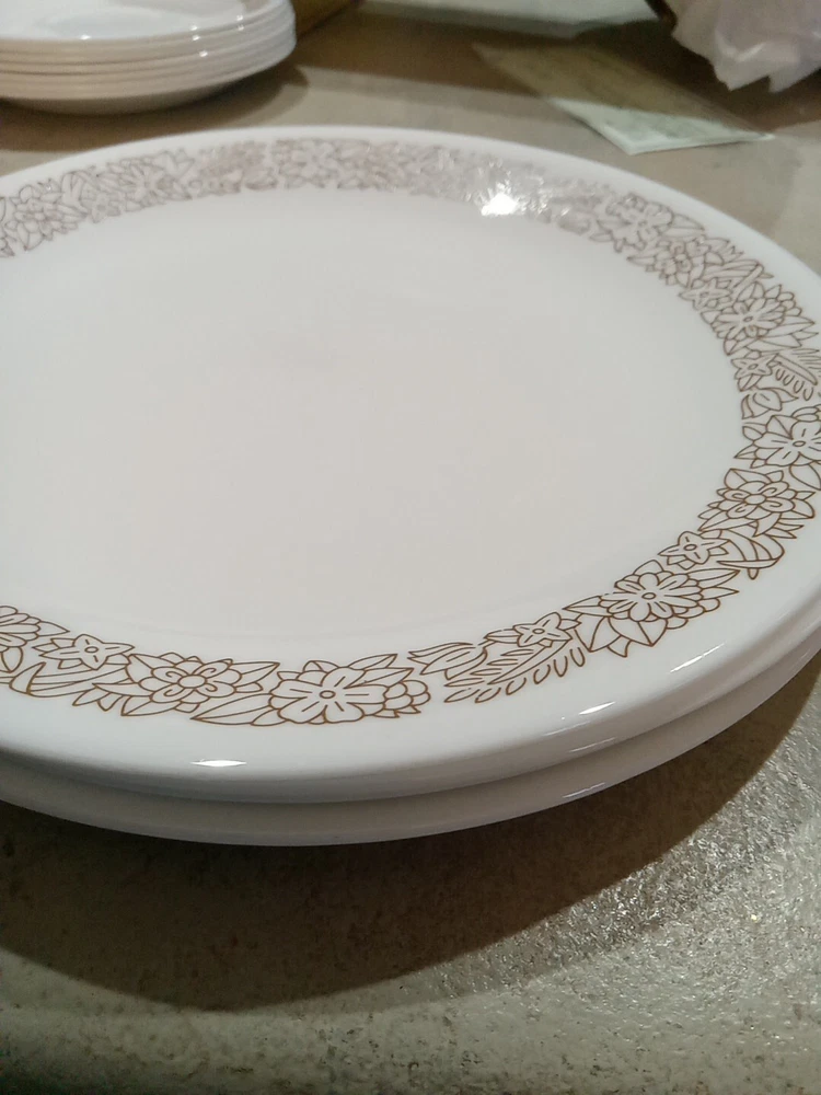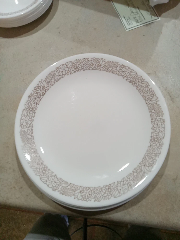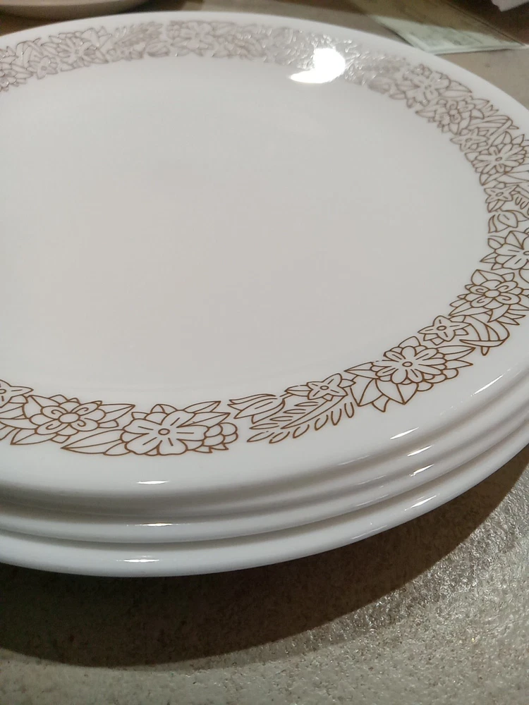 Enhance your collection with this charming four-piece vintage bowl set from Corelle. The round-shaped plates feature a beautiful woodland pattern in brown and white, making them perfect for all occasions. The set includes 4 plates, each with an item diameter of 8.5 inches, and all made from high-quality pressed glass. This original Corelle product is an antique from the 1970s, with no California Prop 65 warning. The bowls are in nice condition and have a printed backstamp. The care instructions require hand washing only. Add these unique, handcrafted bowls to your decorative cookware, dinnerware, and serveware collection today. Additional corelle at my store