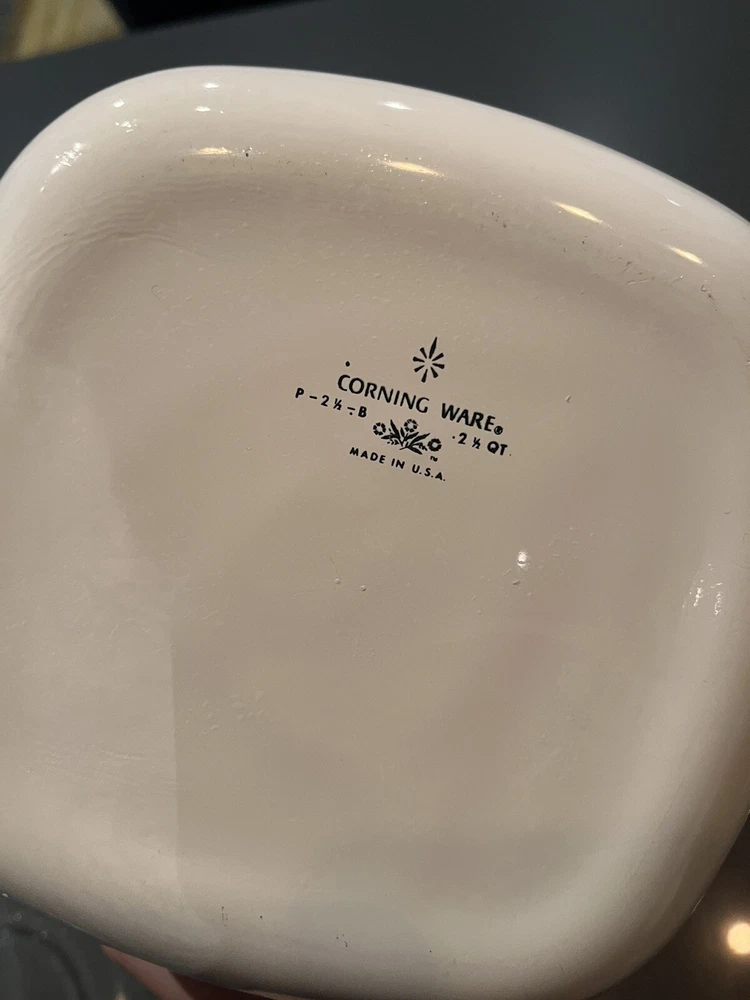 Country/Region of Manufacture:United StatesFinish:GlossyOriginal/Licensed Reproduction:OriginalCapacity:2 1/2 quartType:CasseroleBrand:CorningWareVintage:YesBackstamp:PrintedItem Length:10.25" handle to handleFeatures:With LidColor:White and BlueOrigin:USATime Period Manufactured:1960-1969