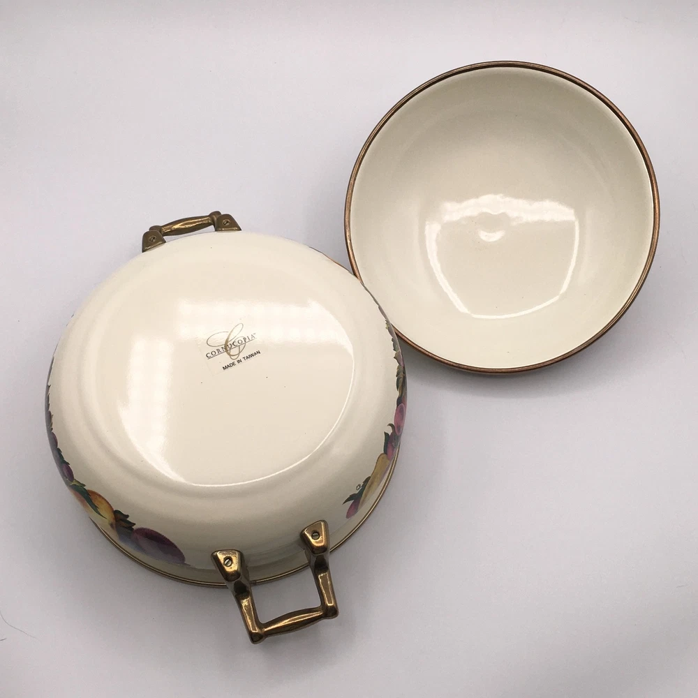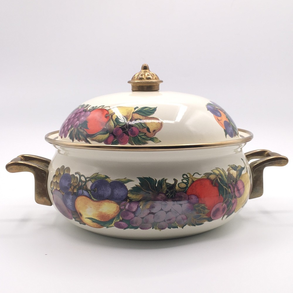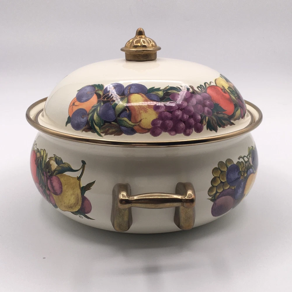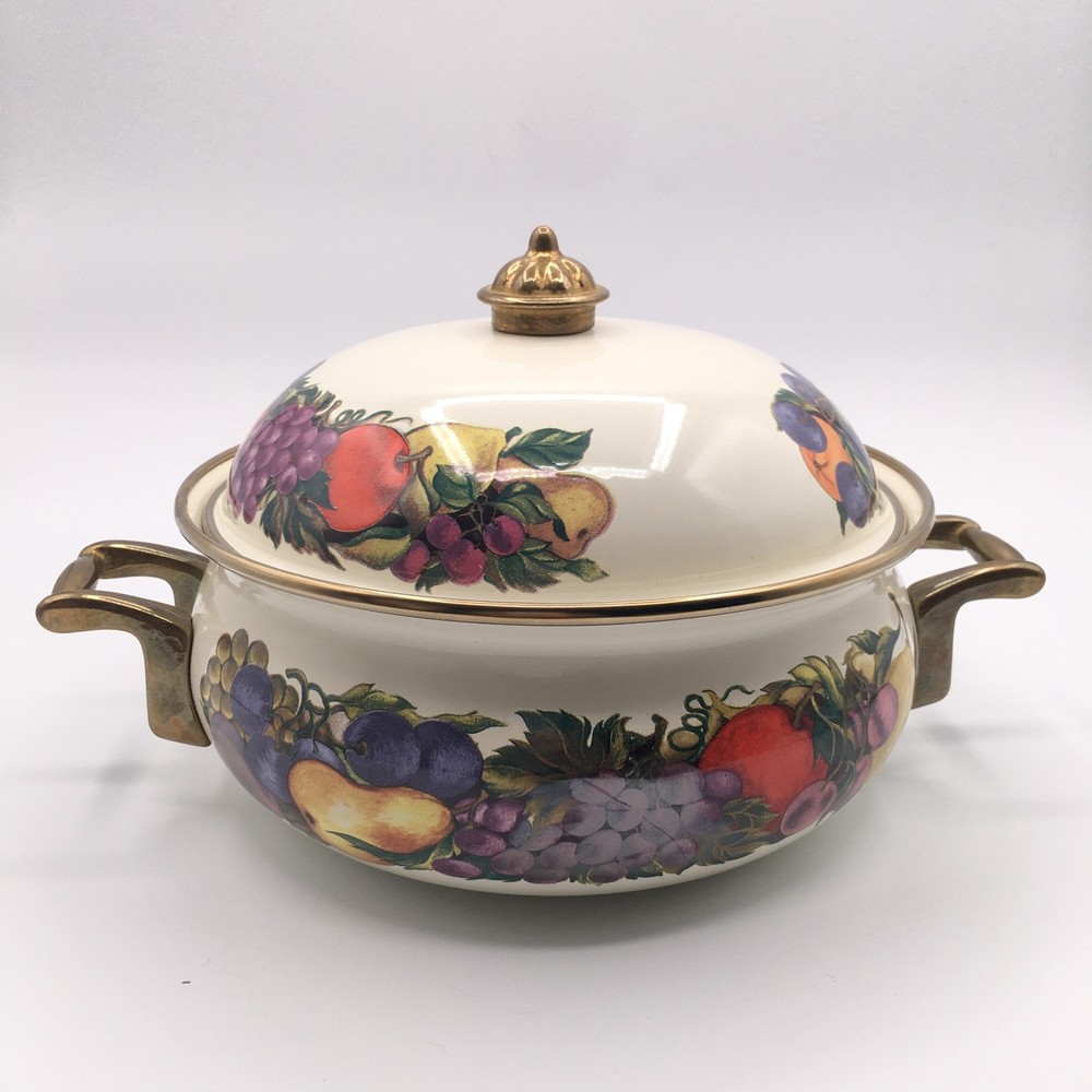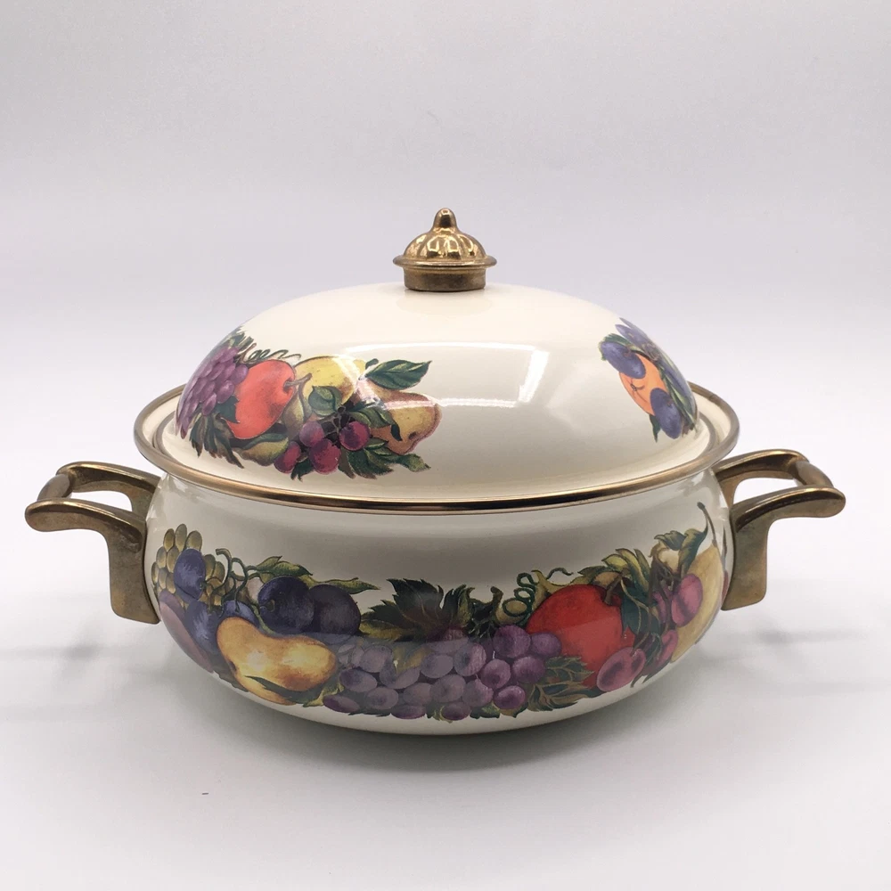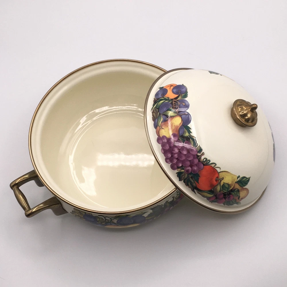 PLEASE NOTE: Watched items do NOT get price drop notifications since my account is a personal seller account, not business. • Vintage Cornucopia Dutch Oven Enamel Fruit Covered Lid 2 Qt Casserole One of my mom's items. When she buys things, she usually ends up leaving it in the original packaging because she doesn't want it to get ruined :) • ✓ Pls see all pictures as they are part of the description, new open box, box is in decent condition • Any stock photos used are for fit only. Remaining pics are of the actual item you'll receive. I do my best to be thorough. If I missed something, please let me know, at the latest, the day after it was delivered so we can work out a resolution. Thank you! ** 😻 Cat friendly, 🚭 smoke free home