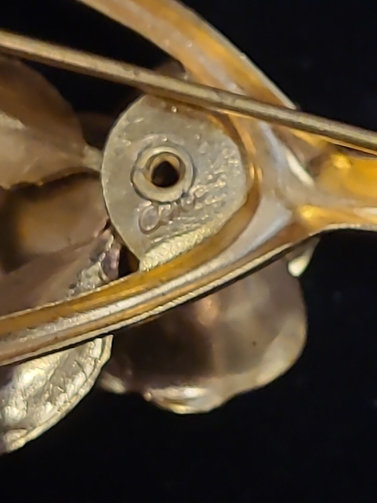 Add a touch of vintage sophistication to your outfit with this beautiful Coro goldtone brooch. The lucky wishbone rose design makes it perfect for special occasions like Christmas, anniversaries, and birthdays. The brooch is signed and features a stunning pink main stone color that complements the gold base metal. This vintage piece is an absolute must-have for any collector and will make an excellent addition to your jewelry collection. Bid with confidence and make this Coro brooch yours today!