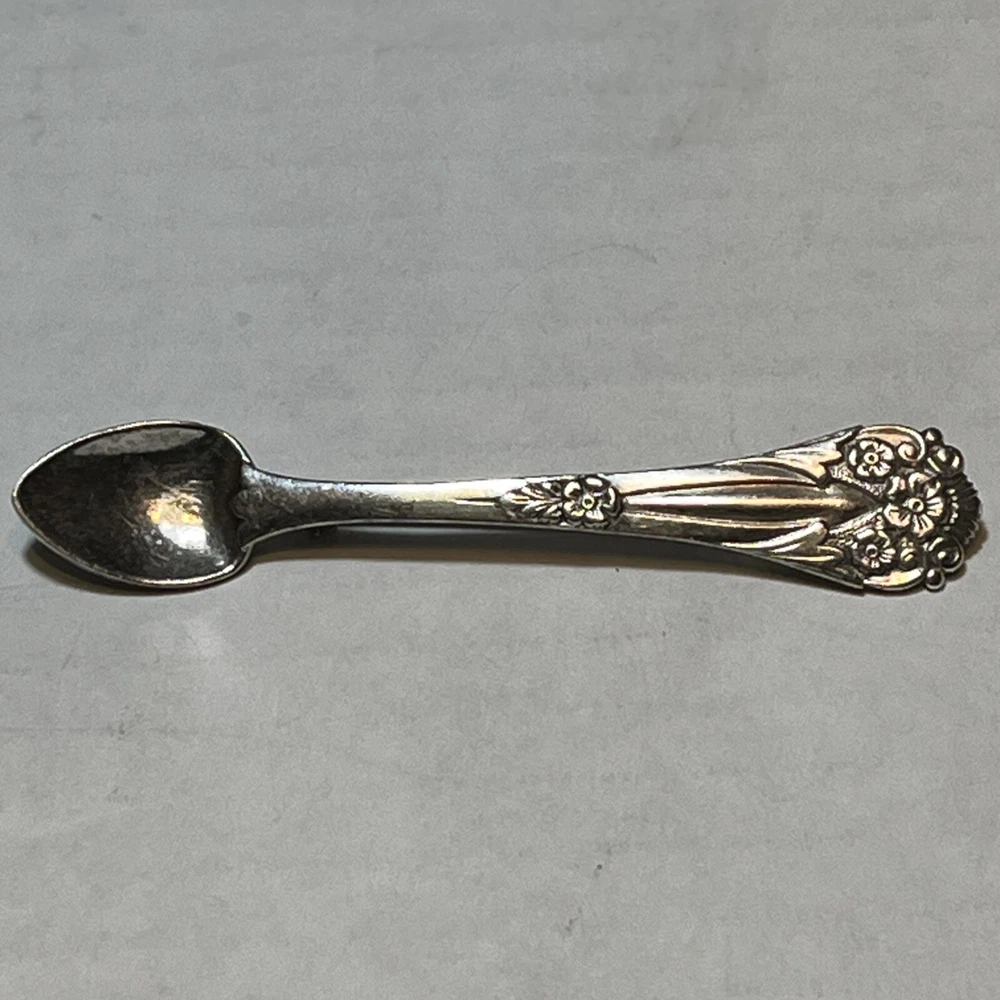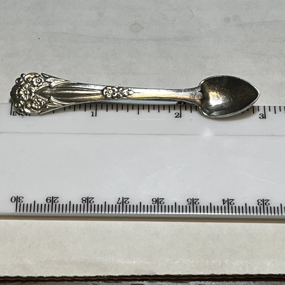 This vintage Coro sterling silver 925 brooch/pin is a charming piece featuring a spoon shape design, measuring 3 inches in length. It is hallmarked and signed by the brand Coro, known for its quality jewelry. The brooch is made of sterling silver, with a silver color and no stones. It is a unique and collectible item, perfect for jewelry enthusiasts.