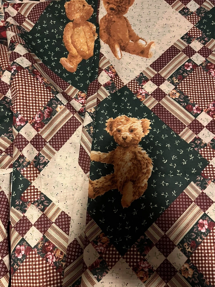 Last Set of these cuties! These are so adorable! Does it not make ya want to grab your old favorite Teddy Bear? This is A darling print with colors of greens, burgundy, floral, gingham, made to look and of course teddy bears. Made to look quilted with a couple other patterns also. Each panel is 40wX72L. Please look at the photos to see how unique and darling. Any questions please ask. Thank you.