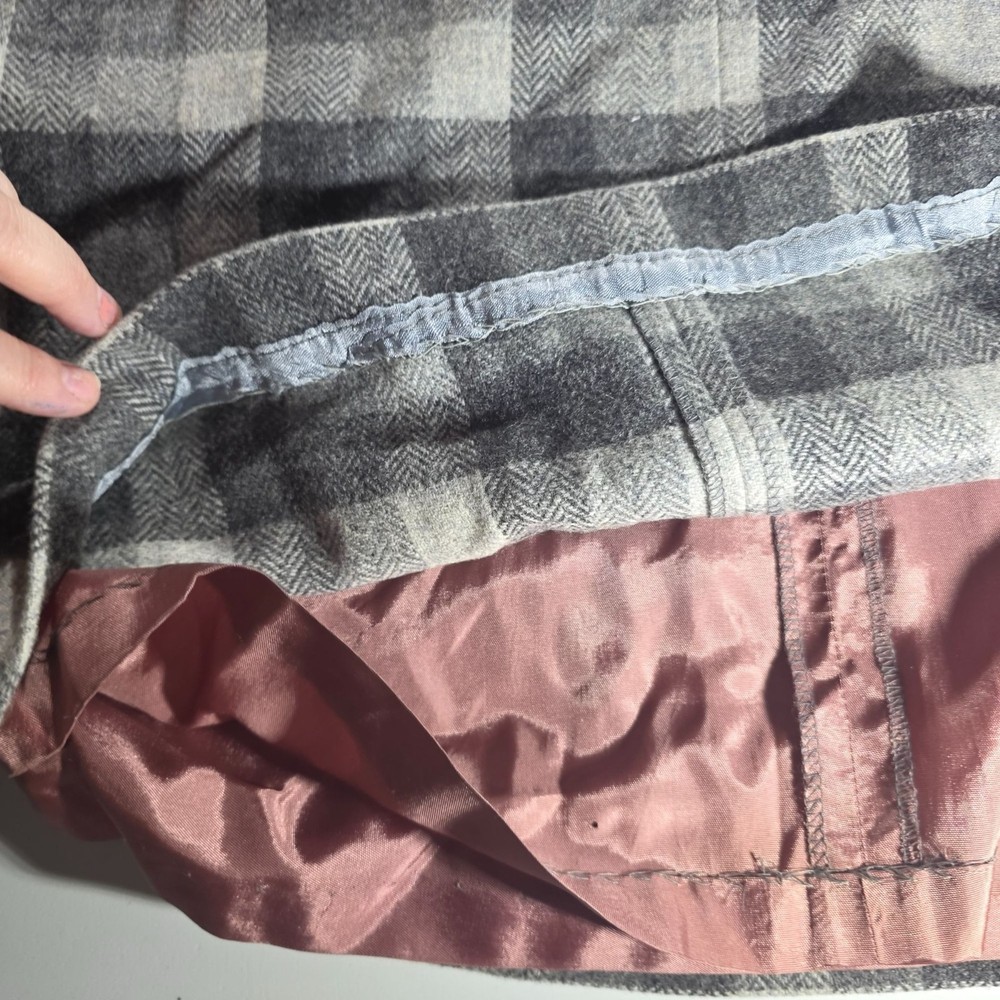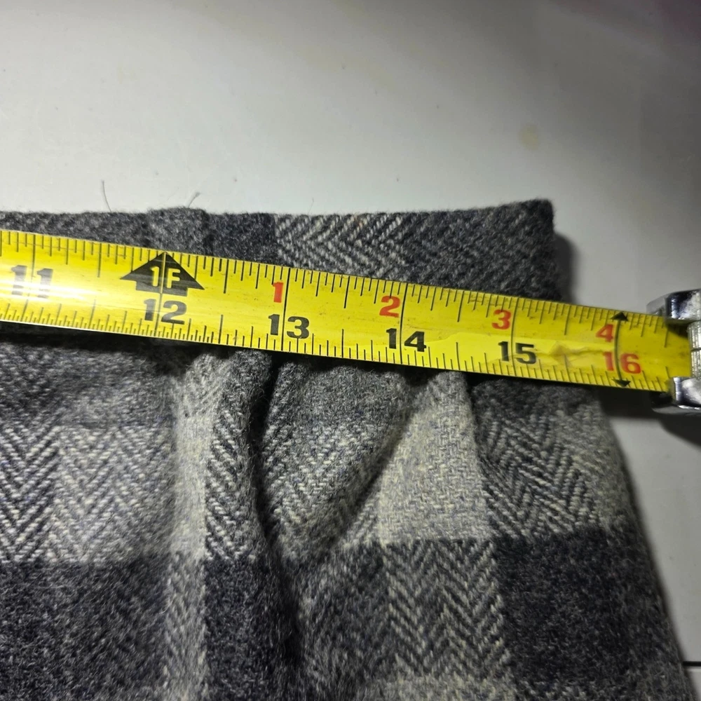 This plaid wool skirt by Country Suburbans combines classic style with durability. Ideal for professional or casual wear, offering comfort and elegance. • 100% pure wool material • Hidden side zipper with clasp • Fully lined with a satin interior • Professional dry clean recommended • Mid-length design Waist = 15 inches across