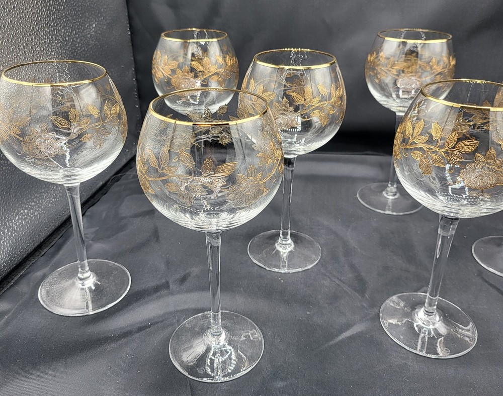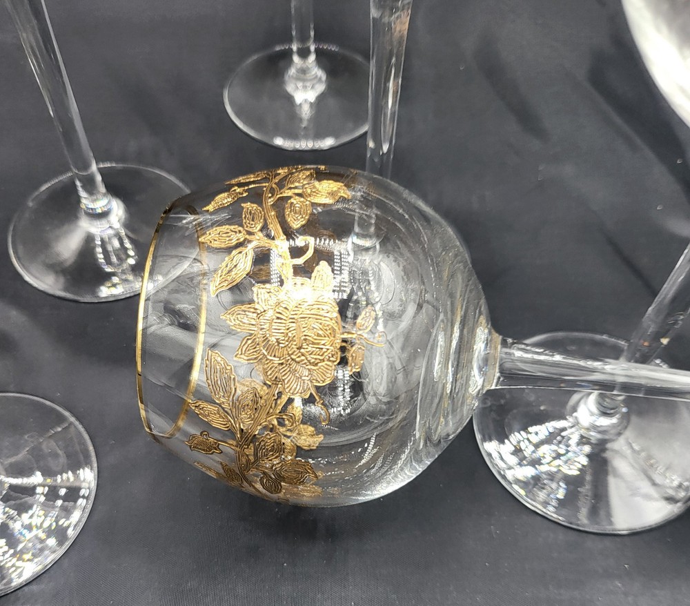 Vintage Coupe Cocktail Wine Crystal Glasses Gold Rose Gold Trim Set Great Condition. See pictures for more details My own items were used one time, very beautiful