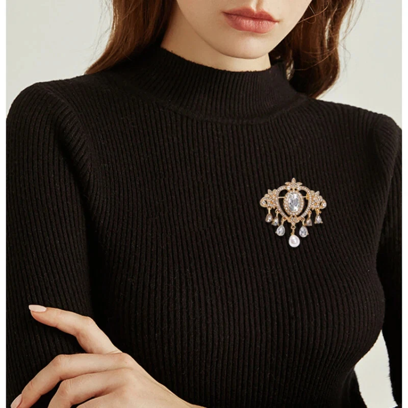 Vintage Court-style Pearl Brooch Exaggerated Accessories Clothes Pin