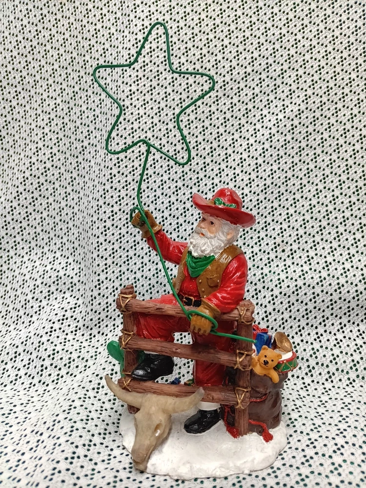 HomeVintage Cowboy Santa Claus Figure Statue Christmas, Lasso Steer Head Fence Toys