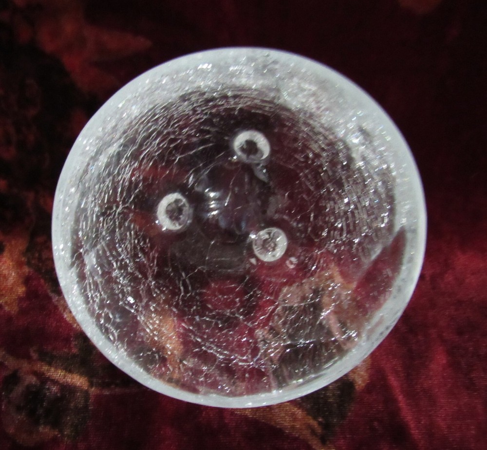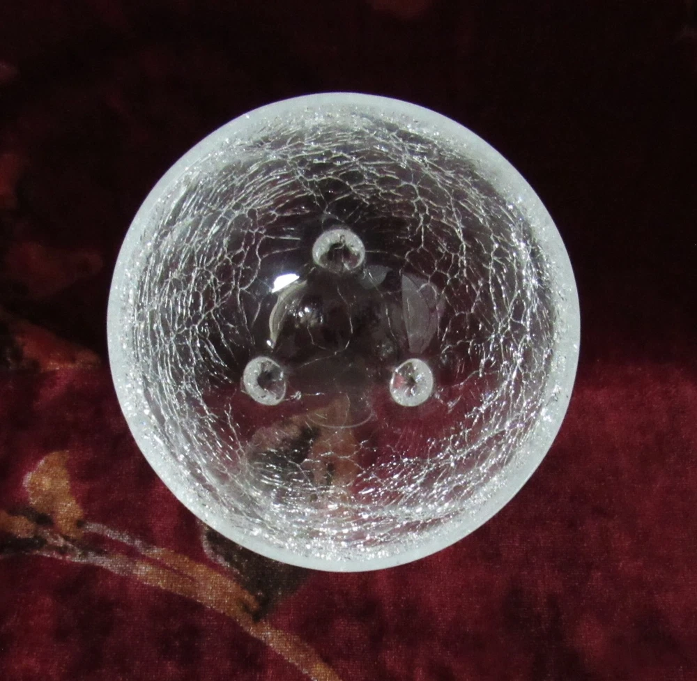 Pair of Crackle Glass Tea Light Votive Candle Holders - Heavy Gauge - EUC. Pair of Crackle Glass Tea Light Votive Candle Holders in heavy gauge glass . Each is 3 3/4 inches wide, 2 3/4 inches high, with a 2 inch "tri-pod" base. No chips, cracks or repairs, and in Excellent Used Condition. Minor marks may exist from use and age - see pictures for detail. This will make an excellent addition to any Votive Candle or Glass collection. CANDLES NOT INCLUDED. Ships via USPS Ground Advantage Mail for a flat amount. - Please review all pictures as these are part of the description of this item - Please pay for item within three days of purchase - Feedback is highly appreciated - Message me with any questions before purchase