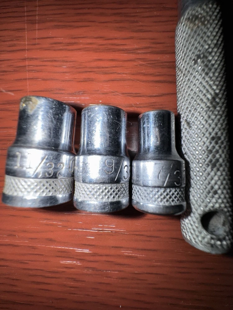 sizes are listed below The Vintage Craftsman BE Series Sockets & Breaker Bar set includes a collection of high-quality mechanic tools from the renowned brand Craftsman. This set includes a range of sockets, a breaker bar, an extension, and a T handle, making it a versatile and essential addition to any toolbox. With the durable construction and timeless design, this set is perfect for both professional mechanics and hobbyists who appreciate the craftsmanship of vintage tools. CRAFTSMAN “BE” Sockets…… BE 1/4 Eight point BE 1/4 6 point BE 5/16 BE 7/16 BE 7/32 BE 9/32 BE 11/32 5 1/2 -6 inch breaker bar 6 inch extension sliding T Handle BE ( not 100% sure if it’s the correct one)