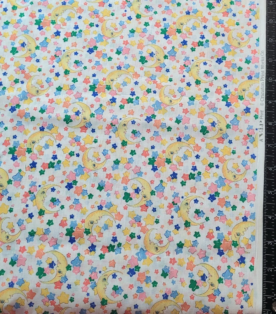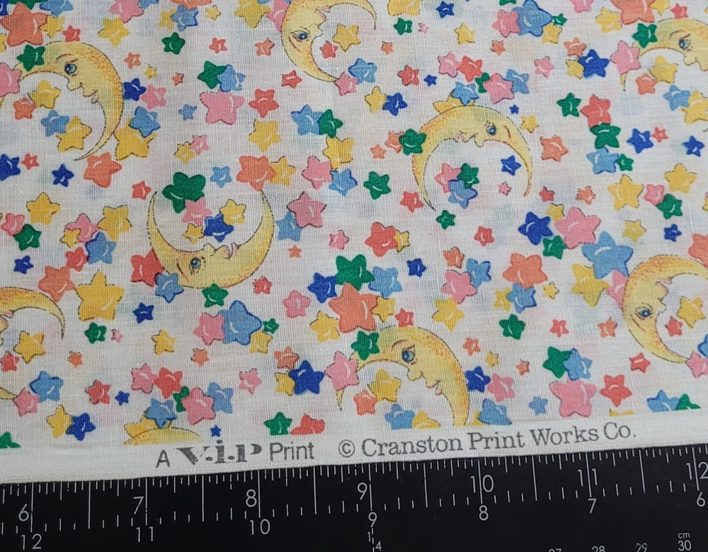 Vintage Cranson Print Works Cresent Moon And Stars. 1yd Cotton