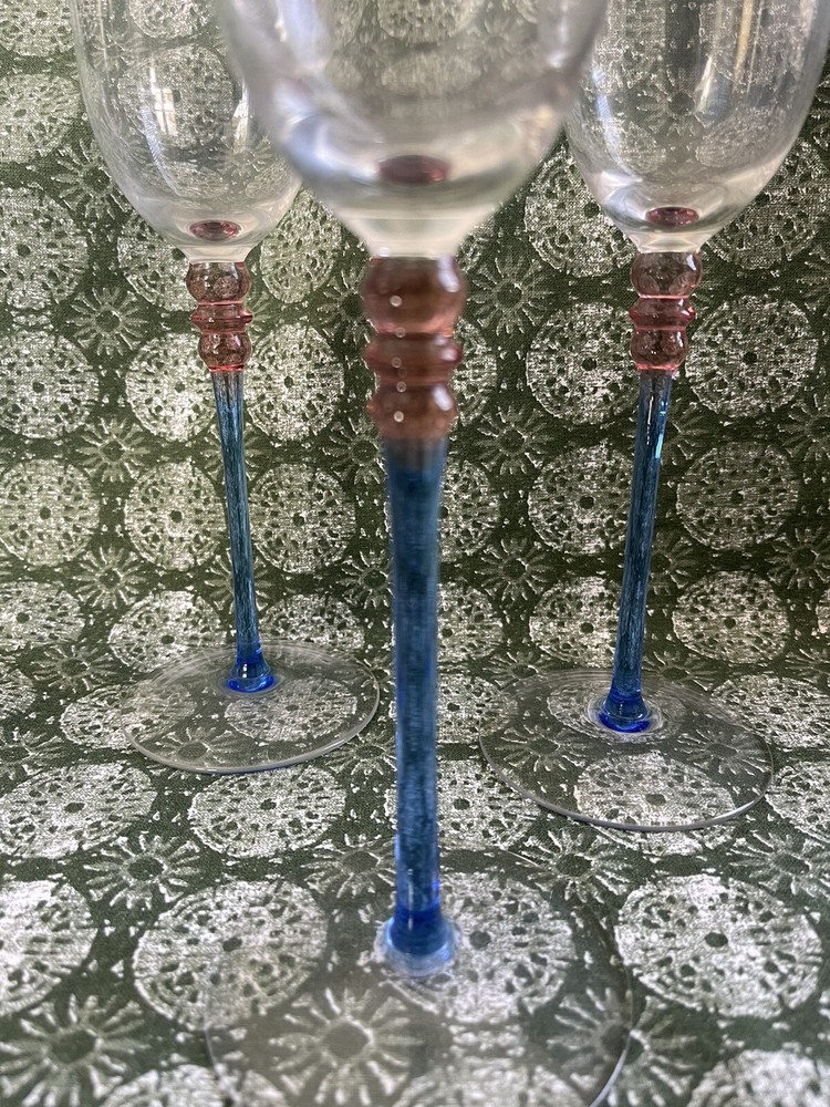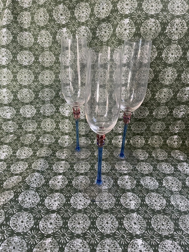 Vintage Crate & Barrel Pink Blue Champagne Flutes Set of 3 9-Inch Stem