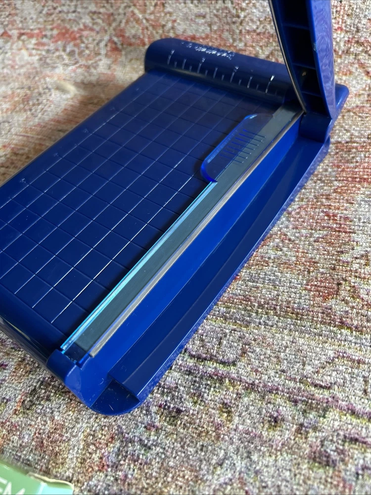 Gently Used. Personal size trimmer. This was the first/original trimmer made for the Creative Memories collection. No box. Very good condition. Please note: 3 of the black round pads on bottom of trimmer are missing. Sold as is. Please see photos for more details.