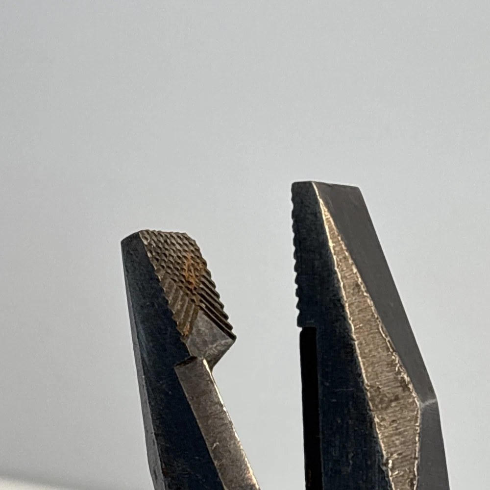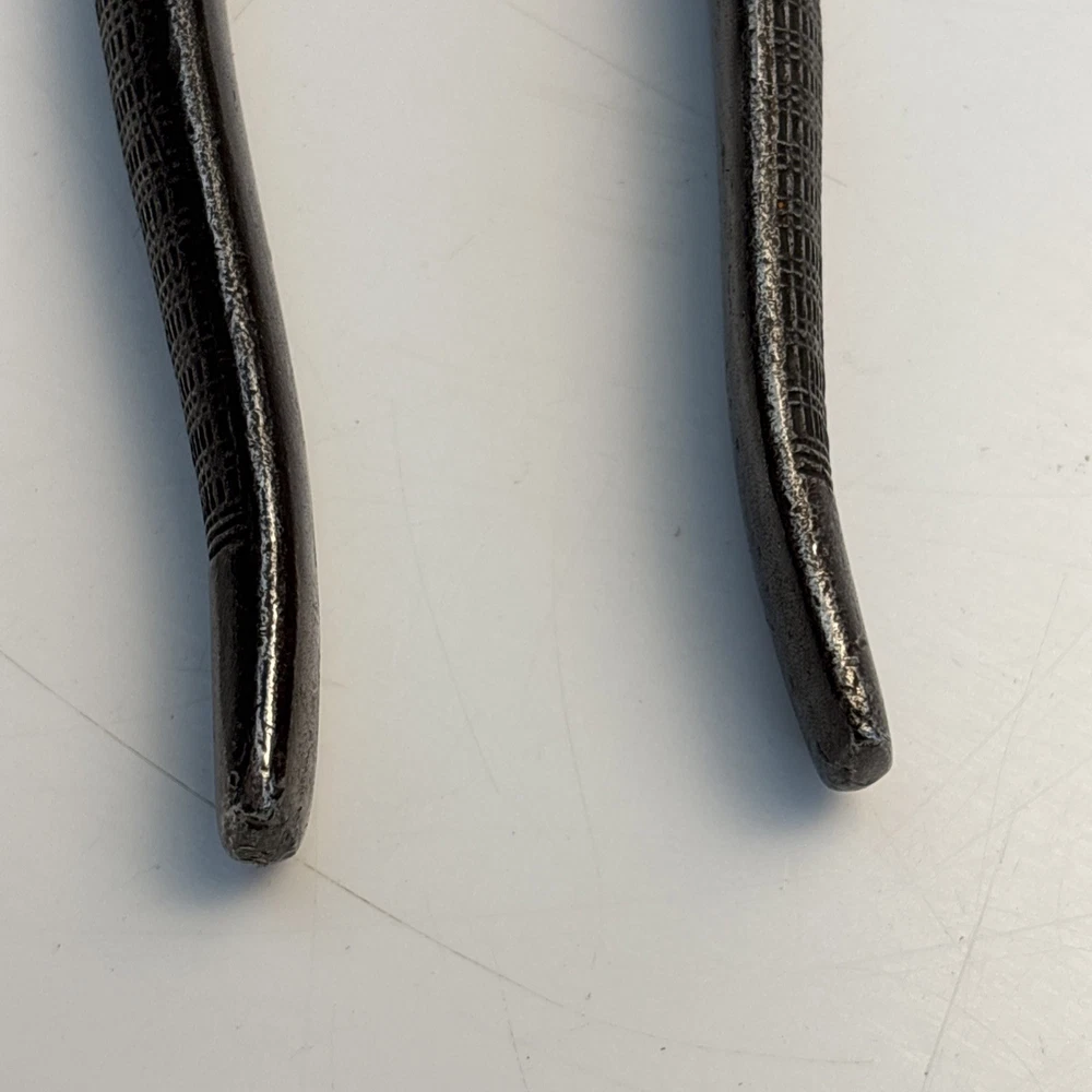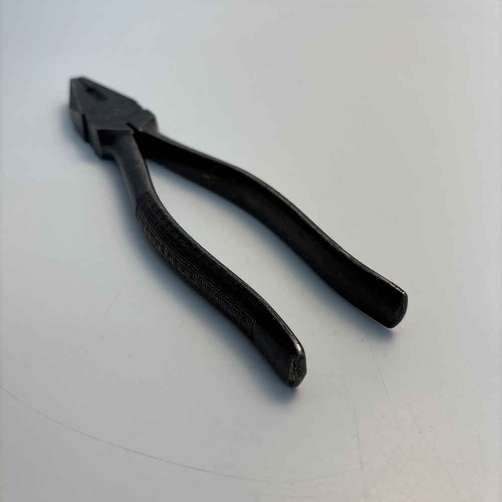 Crescent Tool Co. model 50-8 combination pliers marked Jamestown, New York USA. Forged steel construction with integrated gripping jaws, pipe grip section, and cutting edges near the pivot. Original cross-hatch grip texture on the handles. Markings are visible at the pivot. Condition Used vintage condition. Surface wear, darkened patina, and light pitting from age and use. Teeth and cutters show use but remain intact. No visible cracks or repairs.