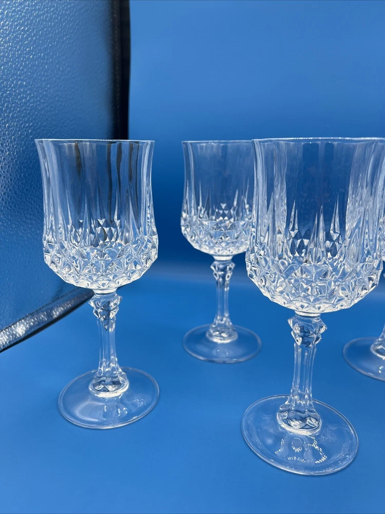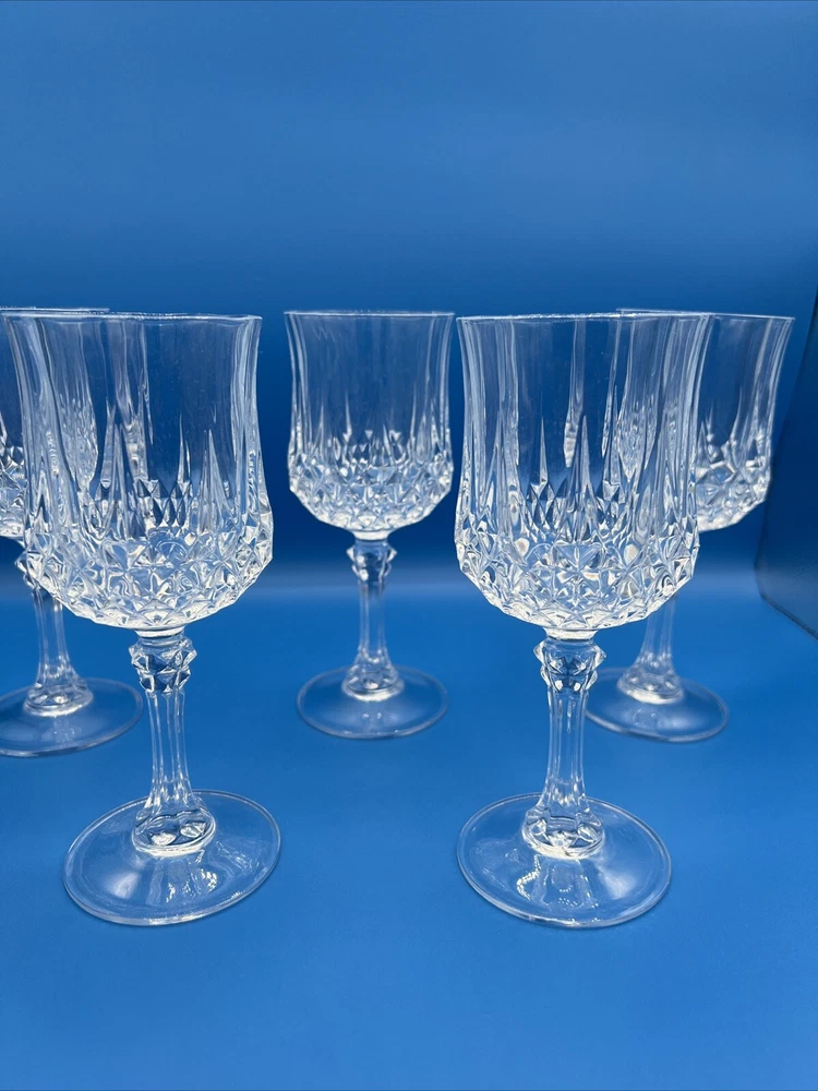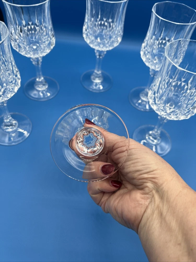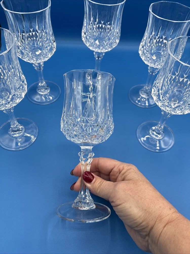 Vintage 1978 Cristal d' Arques Longchamp Crystal Glasses Set of 6, 5 3/4 oz. Approximately 7.25”H