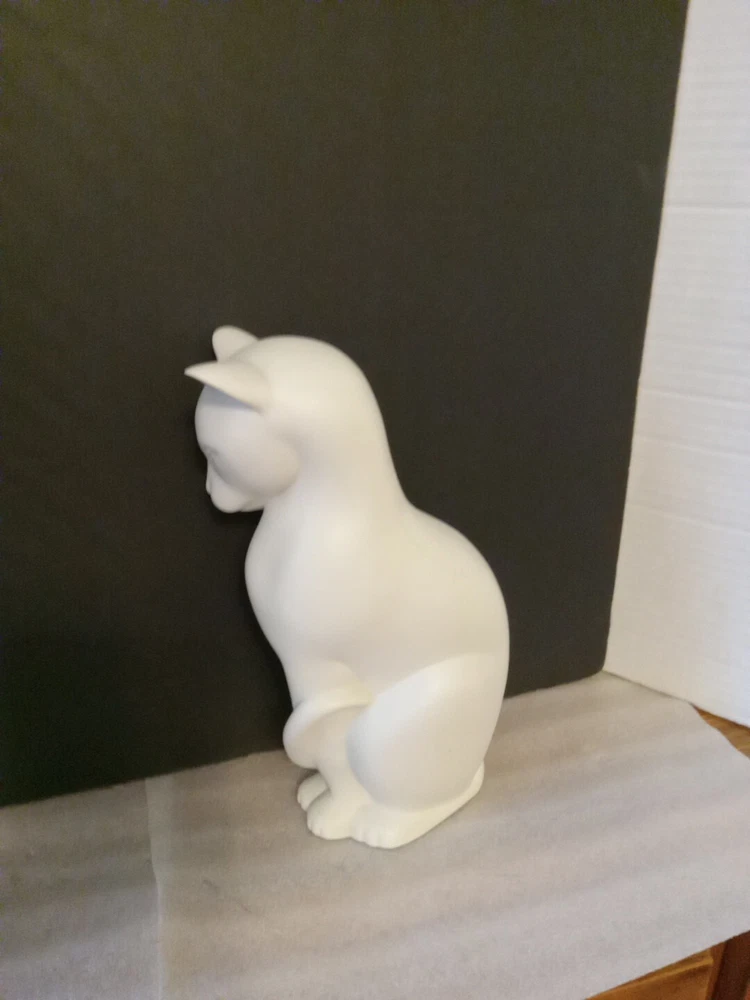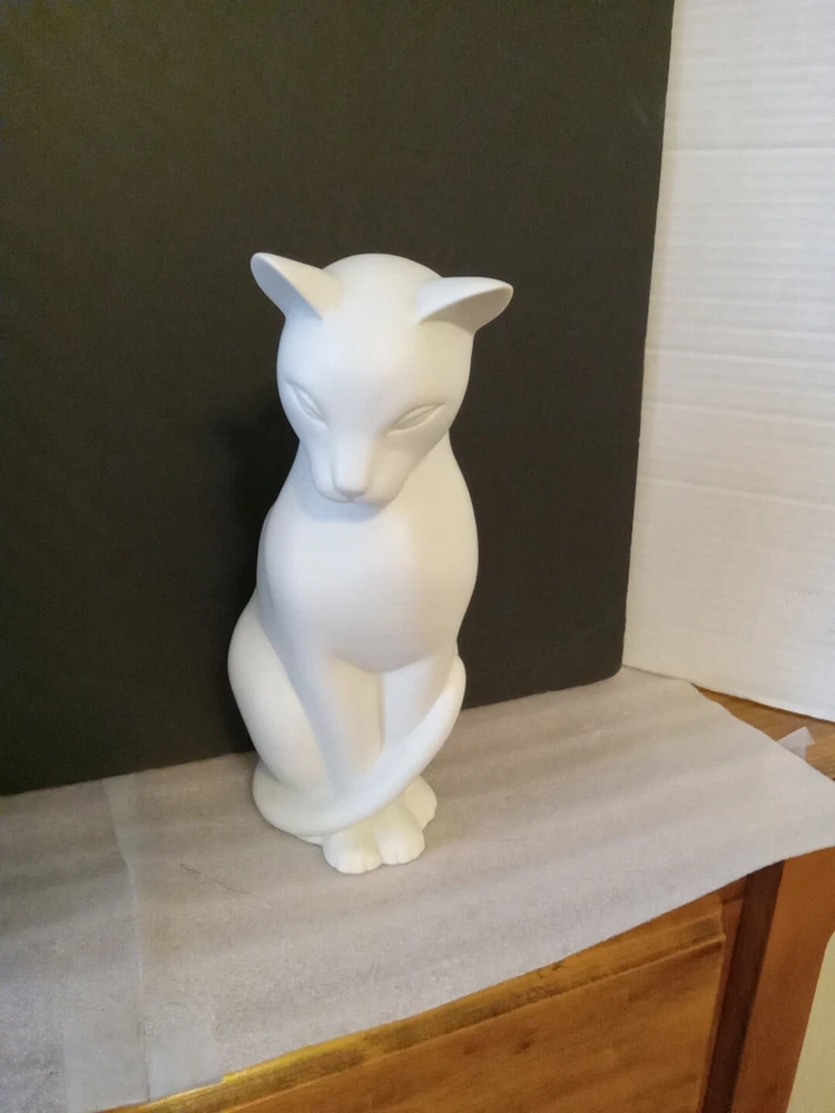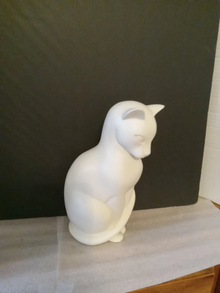 This vintage cat statue stands at 9 inches tall and features a charming white bisque porcelain finish. The intricate details of the statue accurately capture the feline essence, making it a perfect addition to any cat lover's collection. The statue is ideal for display in any room and occasion, adding a touch of elegance to your decor. Made from high-quality porcelain, this statue is a durable and timeless piece that is sure to bring joy to any collector.