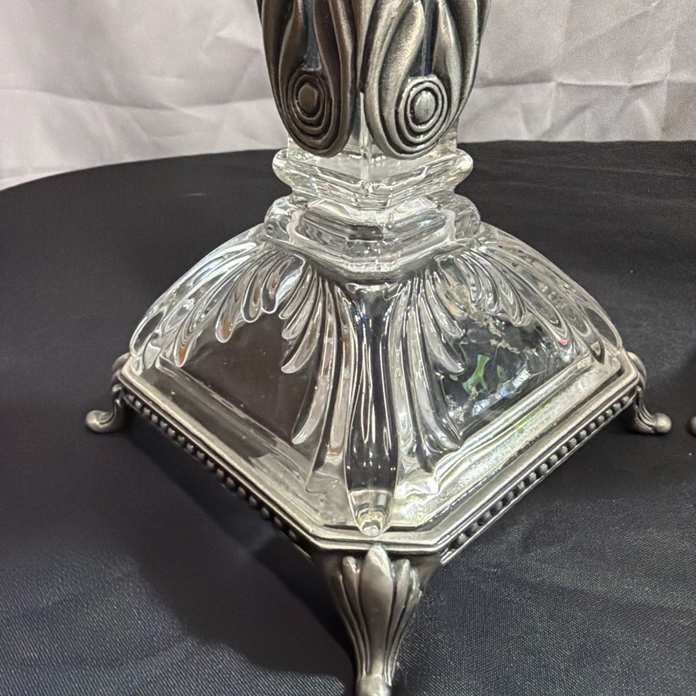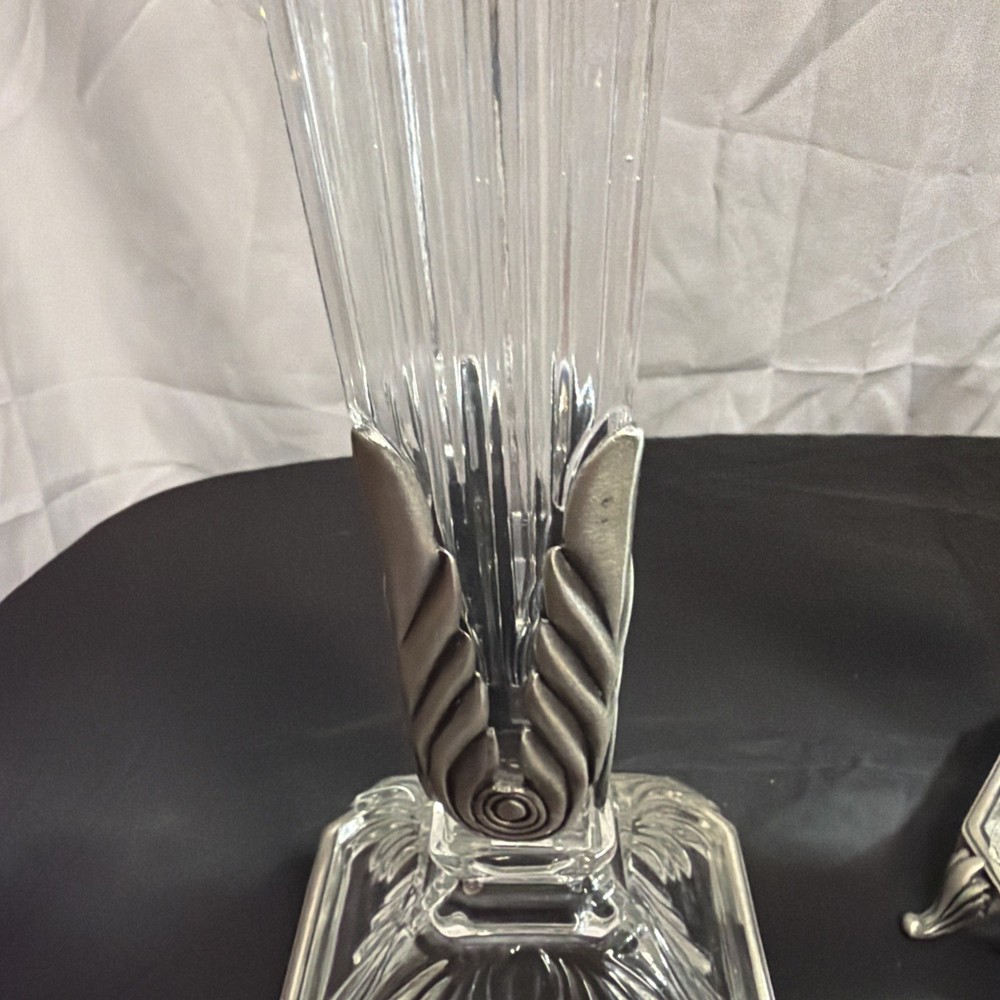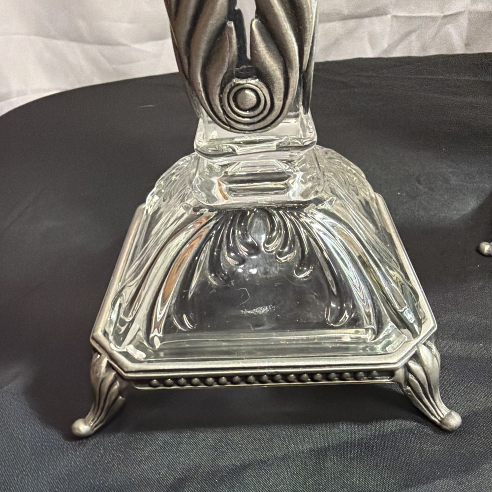 Vintage Crystal Candlestick Set Metal Accents MCM Art Deco