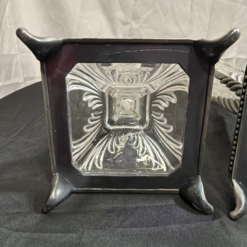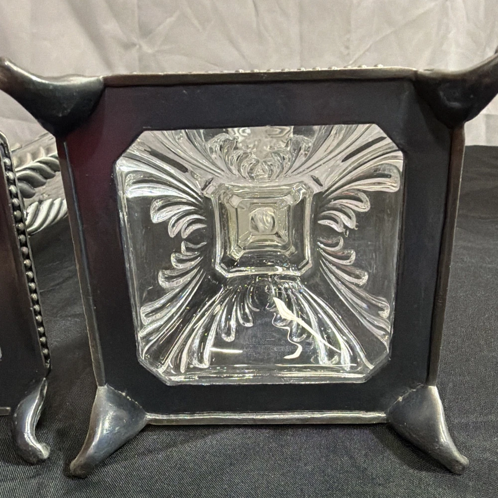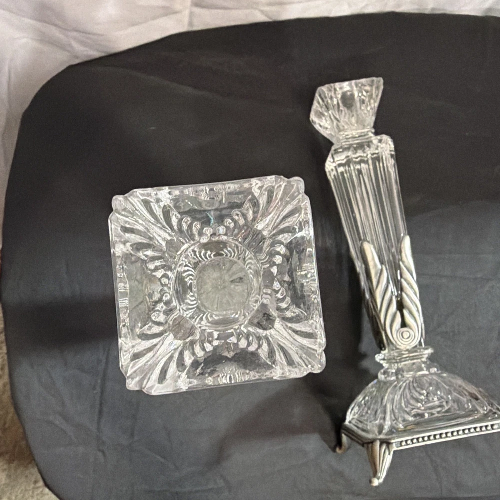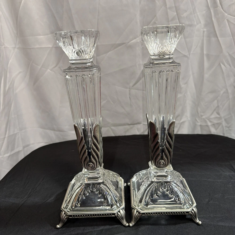 Vintage Crystal Candlestick Set Metal Accents MCM Art Deco