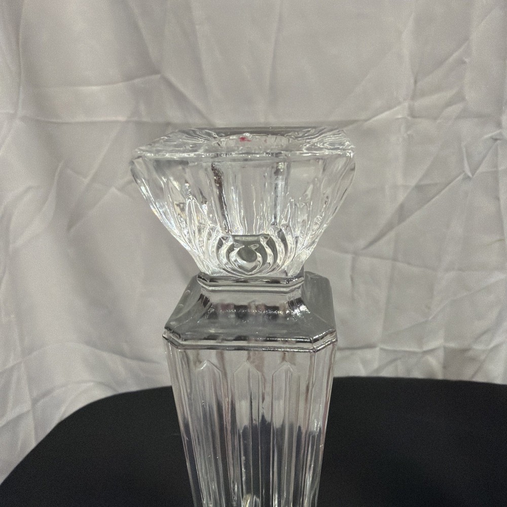 This Vintage Crystal Candlestick Heavy Crystal set features gorgeous lines and metal accents, embodying the mid-century modern and Art Deco styles. The elegant design adds a touch of sophistication to any space, making it a perfect decorative collectible for those who appreciate vintage charm and intricate details. These candle holders are not only functional but also serve as stunning statement pieces in any room.