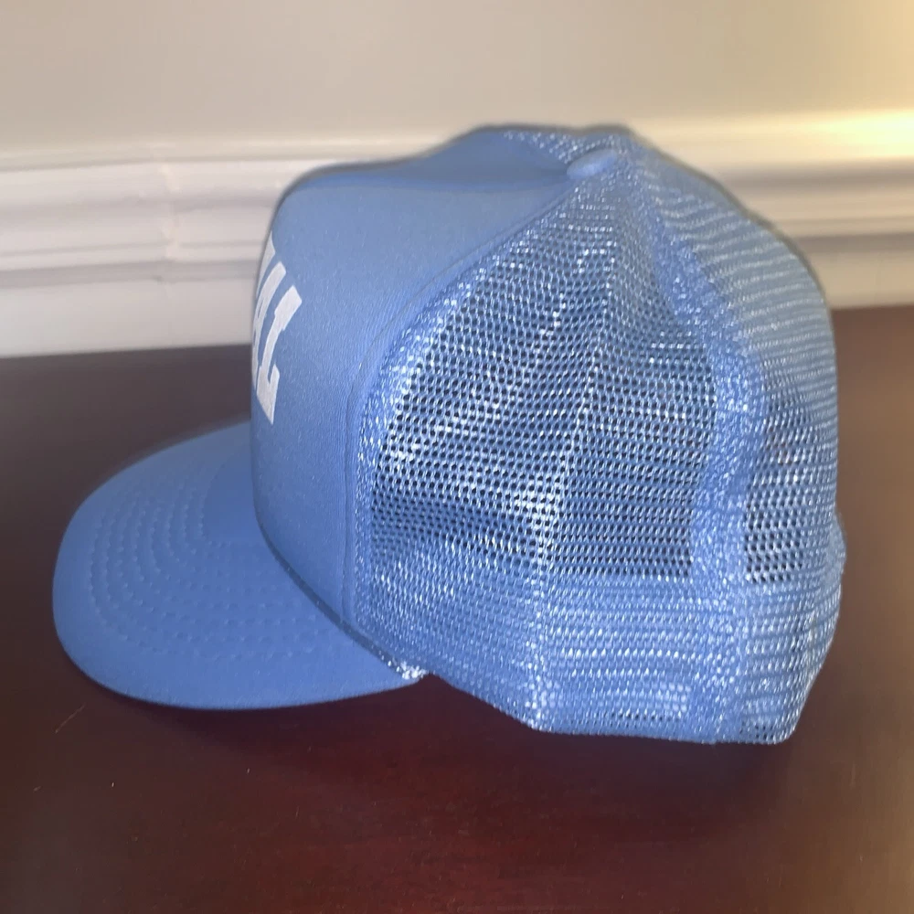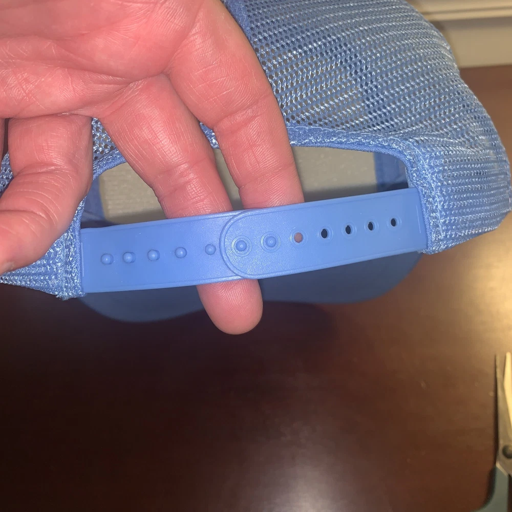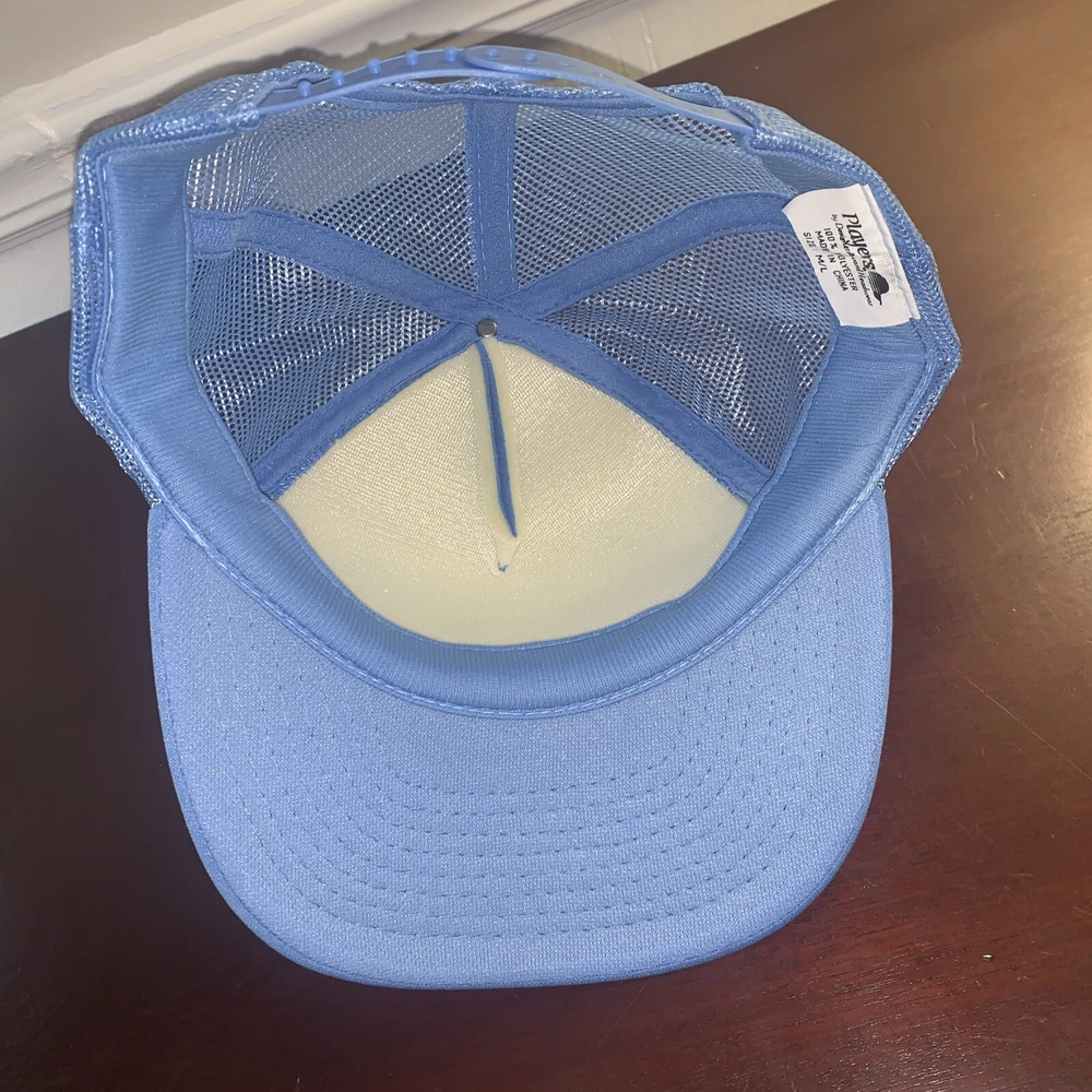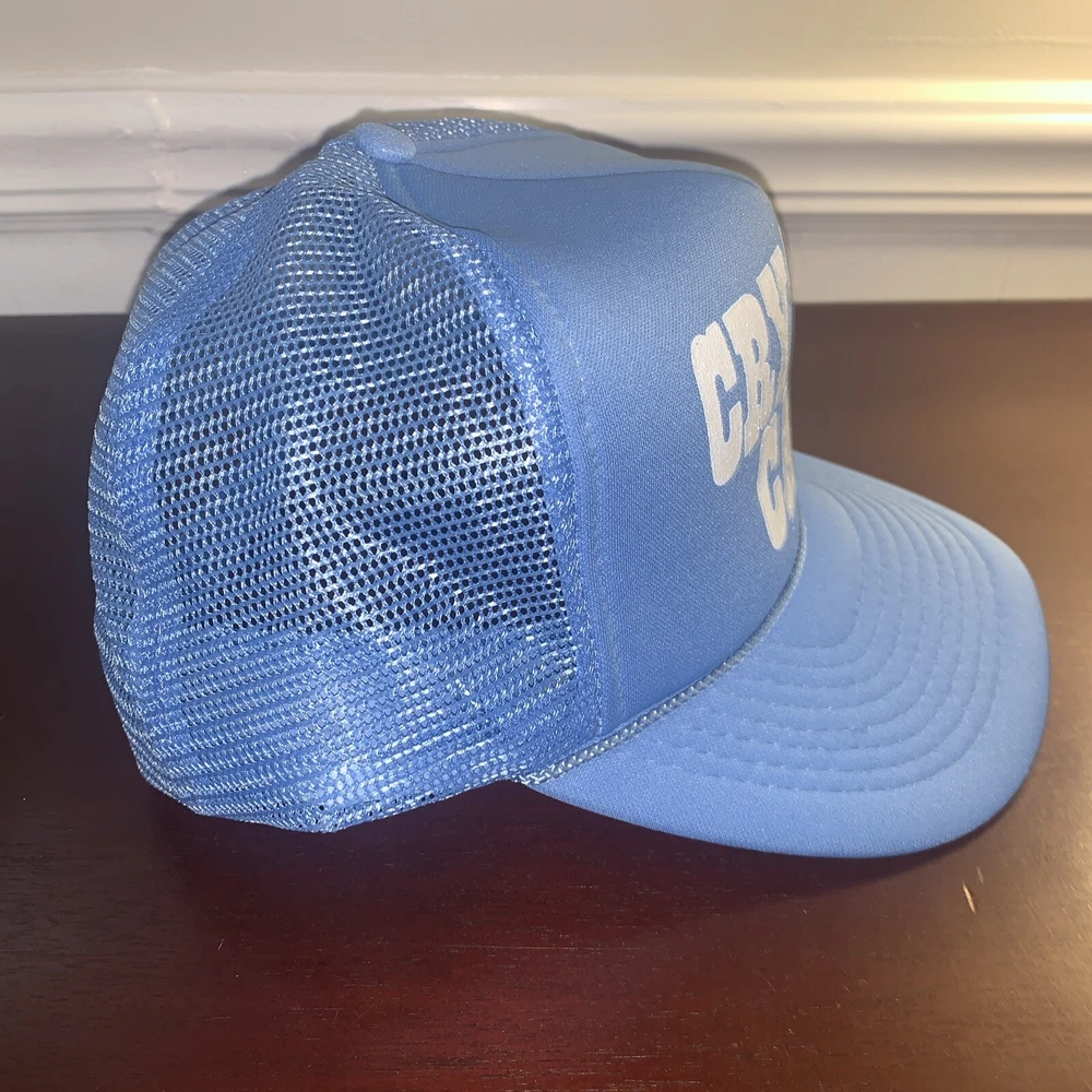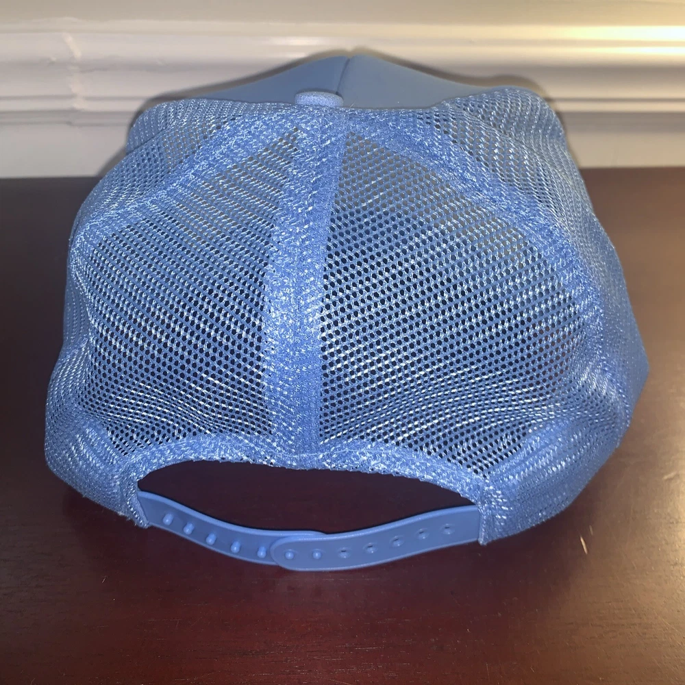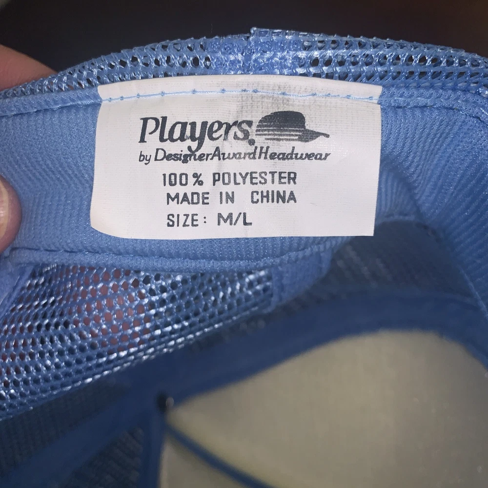 Vintage Crystal Cave blue snapback adjustable M/L trucker hat, Players by DAH (Designer Award Headwear) Size is Medium/Large if you can't tell by the title. Fits a 7.5-sized head at two snaps, so I don't recommend someone with larger head than that purchasing this hat.